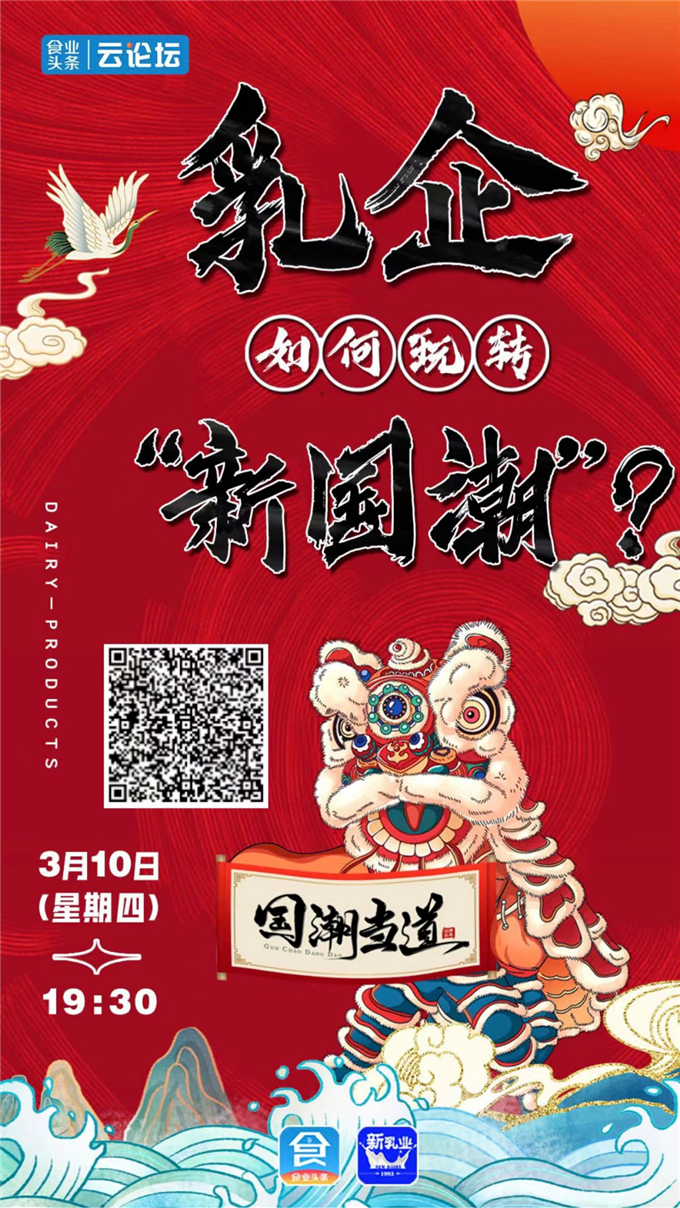 今日19:30,321线上春糖将联合新乳业、食业头条,举办《乳企如何玩转“新国潮”?》主题云论坛,特邀深圳市采纳品牌营销顾问有限公司董事长朱玉童、光明乳业旗下光明冷饮党支部书记、总经理张楠、杭州新希望双峰乳业有限公司总经理闫艳荣、艾媒咨询CEO兼首席分析师张毅,深入分析“国潮”给乳制品行业带来的机遇与变化,分享借势“国潮”的成功经验与未来规划。