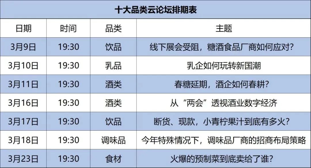 3月历来是招商选品的黄金季,厂商本应踏准节奏,抢种抢收,但春糖延期,厂商节奏被打乱,线下展会受阻,糖酒食品厂商如何应对?针对厂商困惑,3月9日晚,由321线上春糖与食业头条联合举办的首场饮品云论坛隆重举行,论坛通过解析超级确定性B计划来稳定厂商招商节奏。