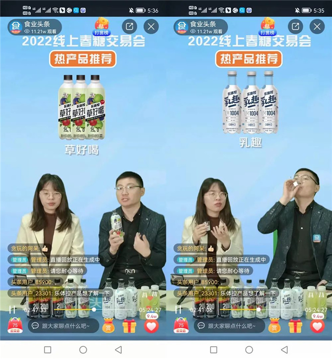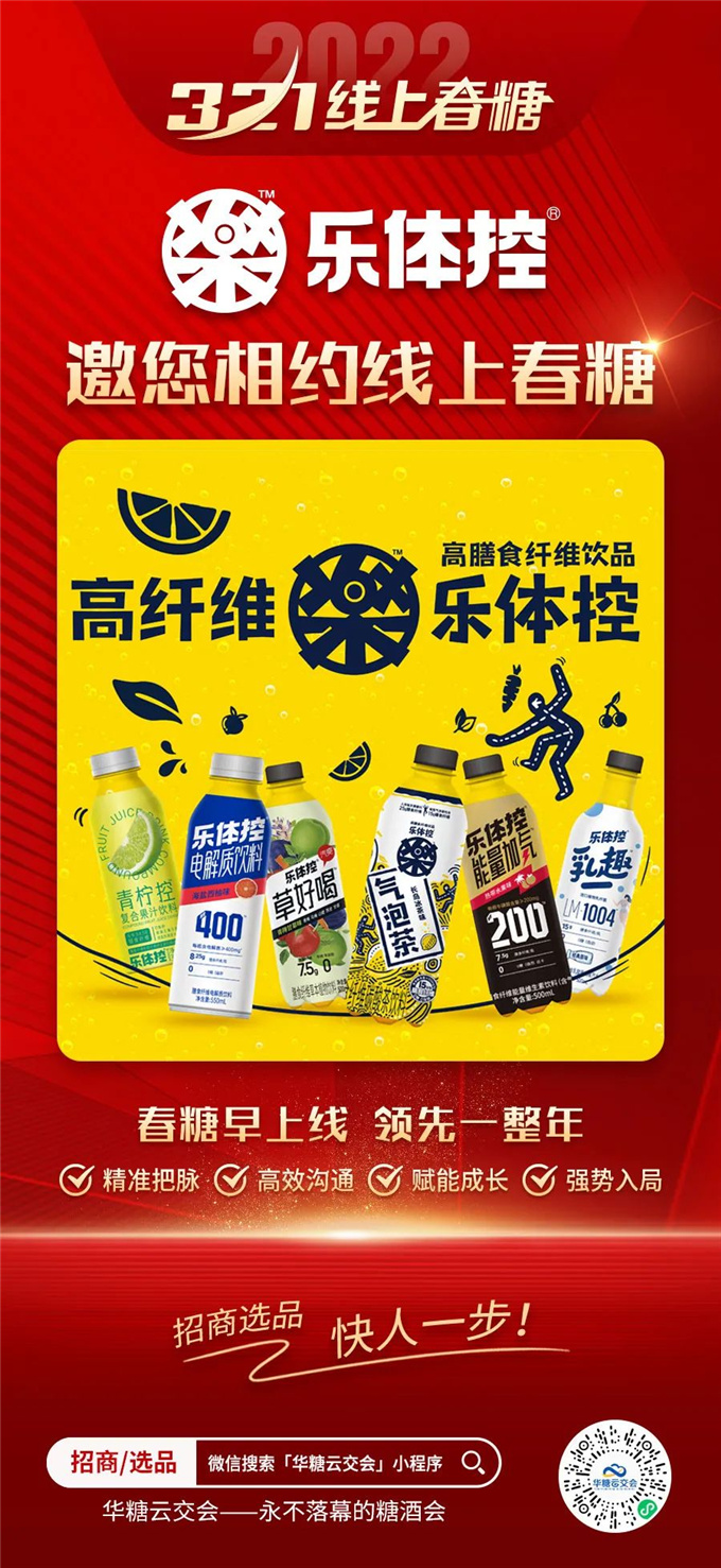 近两年,随着疫情的反复,对于厂家来说,推广新品的时机和节奏往往会被打乱。众多企业为打爆新品纷纷转战线上,线上春糖成为行业新品首发及品牌展示基地。今年,乐体控携电解质水、能量加气、青柠控、草好喝、乳趣等多款新品入驻线上春糖,这些新品更加注重开发“体控”功能,关注消费者的肠胃健康和健康理念,不仅有颜值更加有卖点,一经上线就受到了众多经销商的追捧。
