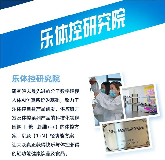上海乐体控健康科技有限公司是国内首家专注于高膳食纤维食品的新消费健康理念的公司,以“简单生活,快乐体控”为品牌理念。公司拥有自己的研究院,具备新品研发、设计、供应链管理的综合能力,仅仅围绕[-糖·纤维+++]的体控方案,以及[1+N]轻功能方案,为大众推出了兼具快乐与体控的轻功能健康饮品。