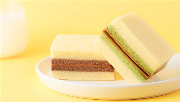 奶皮白蛋糕拥有巧克力和抹茶两种口味,都是当下年轻人喜爱的口味,并且奶皮白蛋糕在口感上做了创新升级,利用倍速气感打发技术, 200转/min高速充气打发面糊,烤制后内部超多的细密微孔,轻火慢烤水分少流失,烤制前后几乎等重,所以口感上会更加蓬松绵软,好吃不噎。