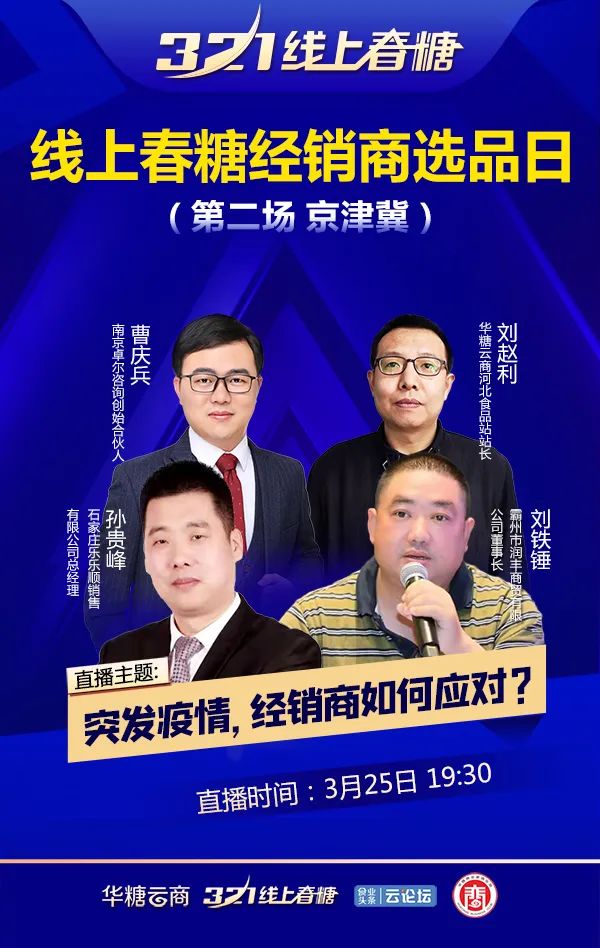 3月25日,华糖云交会“线上春糖”召开“突发疫情,经销商如何应对?”为主题的线上云论坛,在53分钟的分享时间里,三位行业大咖进行了分享,凝聚2.8w家经销商同时观看,引发他们的思考和交流。