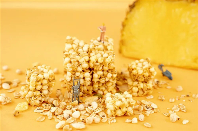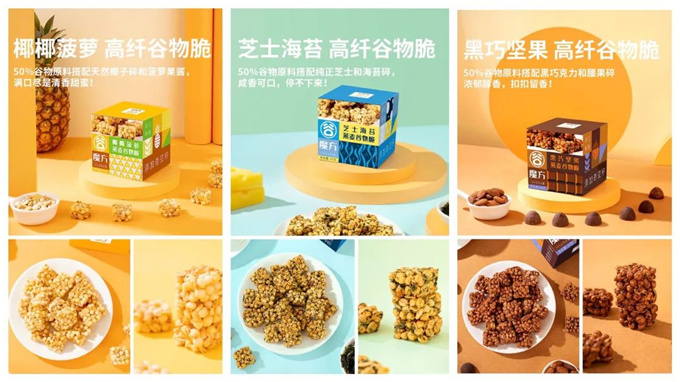 而谷魔方这款产品,在口味和口感问题上就解决的很好。在口味方面,产品以芝士、海苔碎、菠萝果酱、椰子碎片和椰子粉、黑巧、坚果等热门食材元素搭配出缤纷的口味混搭效果,可甜可咸,天然的食材勾勒出的口味基底显得淳朴和浓郁。而为了增加口感,这款产品在燕麦的基底上,搭配了低温膨化的谷物球和玉米小星等食材,让产品口感更加酥脆有层次。