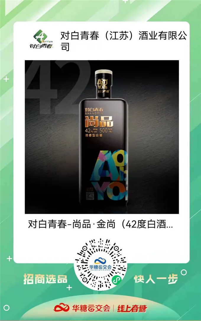 对白青春作为对白青春(江苏)酒业有限公司旗下品牌,主打时尚与健康,是一款新美学、新浓香代表,一经入驻线上春糖就受到了众多经销商的关注。