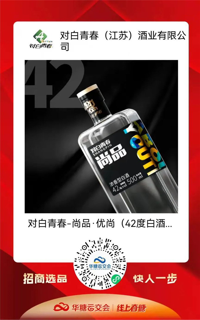 醉美口粮酒,时尚弄潮儿。对白青春诚邀全国经销商相约线上春糖,共享酒业新商机!