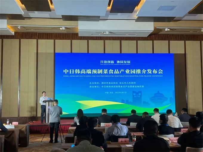 美好五月,繁花似锦。为切实做好预制菜品牌建设,全力推动中日韩高端预制菜食品产业园建设步伐。5月7日,由潍坊市食品协会、安丘市人民政府主办,中日韩高端预制菜食品产业园建设指挥部承办,以“开放创新,协同发展”为主旨的中日韩高端预制菜食品产业园推介发布会在青岛隆重举办。