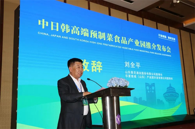山东景芝酒业股份有限公司董事长、华夏食域(山东)产业园开发有限公司董事长刘全平代表产业园开发运营主体发表致辞;中产源建(青岛)投资有限公司董事长、华夏食域(山东)产业园开发有限公司总经理王林现场对招商项目推介,就产业园区六大重点招商领域等广大客商关注的热点内容进行了全面介绍和解读。