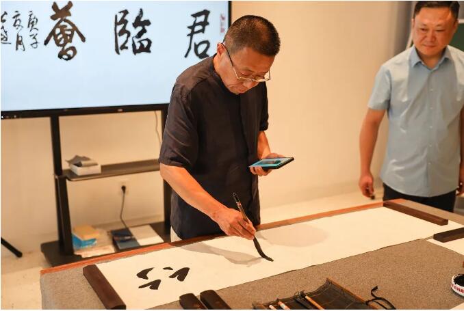 “文化临水,墨韵酒香”。7月19日上午,在骄阳似火的盛夏,安徽临水酒业霍邱临水玉泉君临荟品牌体验中心迎来了几位特别的客人。霍邱县书法家协会的艺术家们走进君临荟,展开一场文化艺术与洞藏美酒的交流。