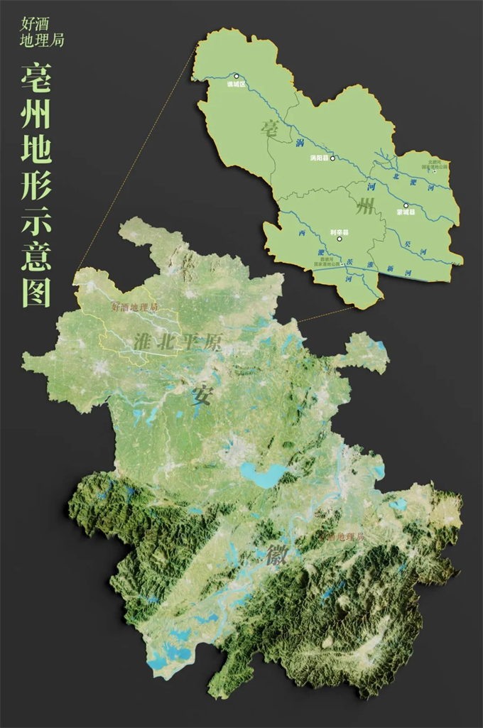 |亳州是国家历史文化名城,位于安徽省西北部,地处华北平原南端,属暖温带半湿润气候区,季风明显,气候温和,适宜冬小麦、大豆、玉米等粮油经济作物和白芍、牡丹、菊花等中药材生长。 制图/好酒地理局视觉中心