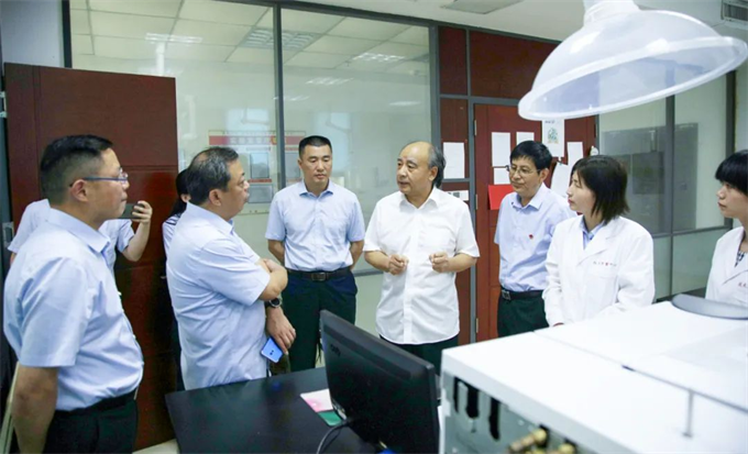 |古井集团党委书记、董事长梁金辉(右四)在古井科技楼调研