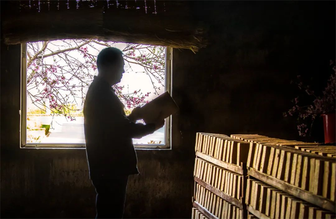 |花开制曲、花落曲成,桃花春曲酿造出古井贡酒独有的“时节味道”。