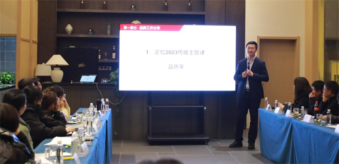 2023年12月4日,金六福控股集团品牌交流分享会在临水玉泉大别山洞藏酒庄醉隐山房举行,金六福控股集团副总裁李践楚,临水酒业经营第一责任人兼销售公司总经理、金六福控股集团品牌负责人张云翮,以及来自金六福控股集团旗下九家酒企的品牌相关负责人出席了本次会议。