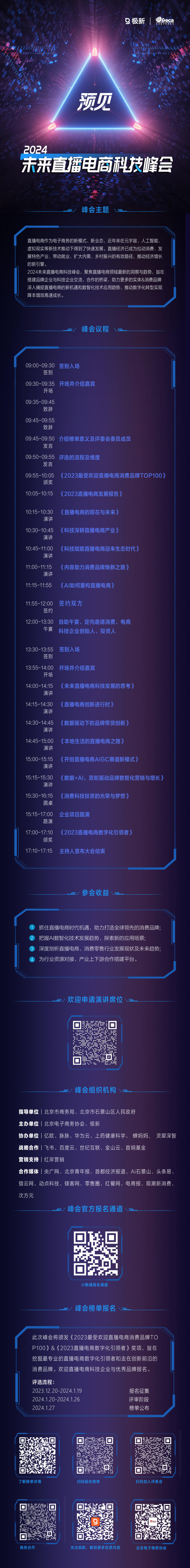 因此,极新决定联合北京电子商务协会正式启动「2024未来直播电商科技峰会」,以“预见”为主题,承袭“极新”系列年度行业观察的视角,邀您共商直播电商&消费科技行业破局之道。