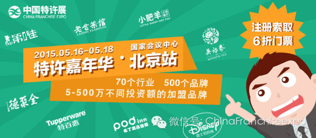 活动内容:120家知名连锁加盟企业,120面特许加盟行业的旗帜,经中国连锁经营协会严格筛选及资质认证,特评选出中国特许企业120强。在2015中国特许展北京站期间,将现场公布中国特许企业120强企业名单,并设立专门的特许120强对接区。欢迎前往5A馆近距离了解特许120强企业发展现状,咨询加盟项目。并祝愿广大投资人乘兴而来,满意而归。