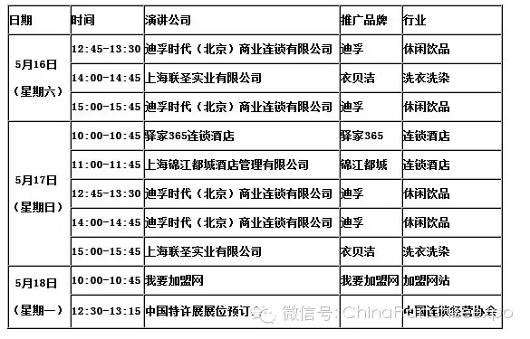 活动内容:为让广大投资人对连锁加盟项目有一个更加全面,更加直观的了解,2015中国特许展将在展览期间为特许企业和投资人之间搭建一个对接的平台。本次项目推介会上将会有数家企业对其加盟项目进行现场宣讲,解决投资人提出的各种问题。欢迎有兴趣的投资人于展会期间前往项目推介会现场了解详情。