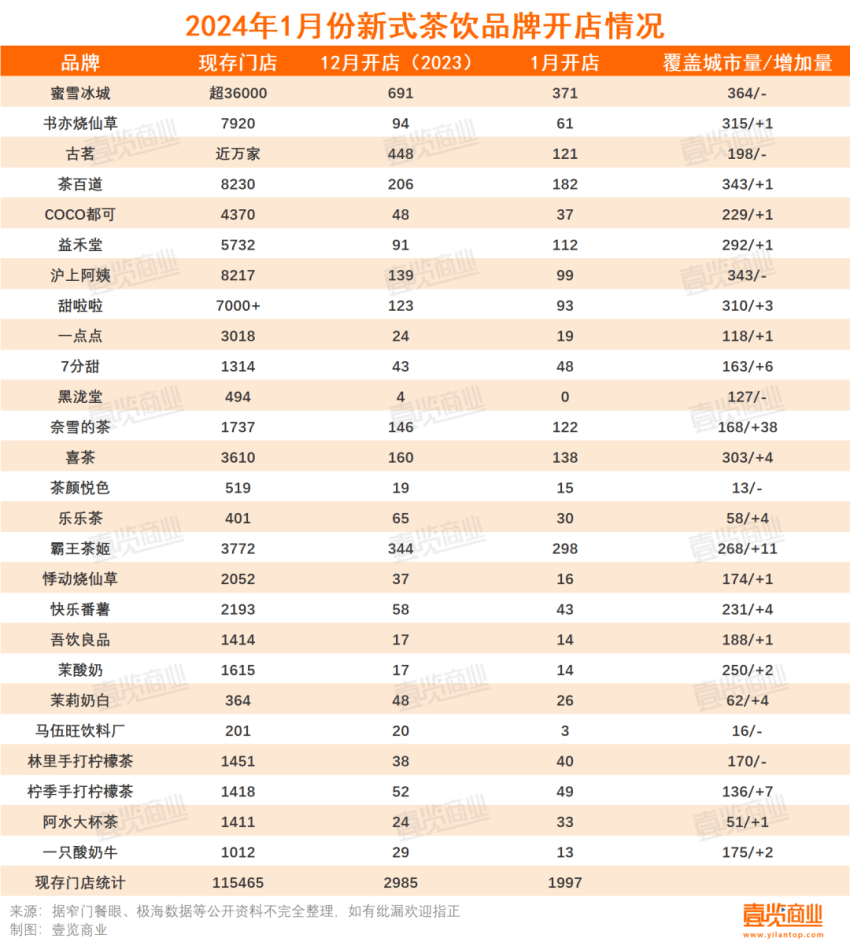 1月,新式茶饮品牌现存门店量达11万,门店扩张速度放缓。