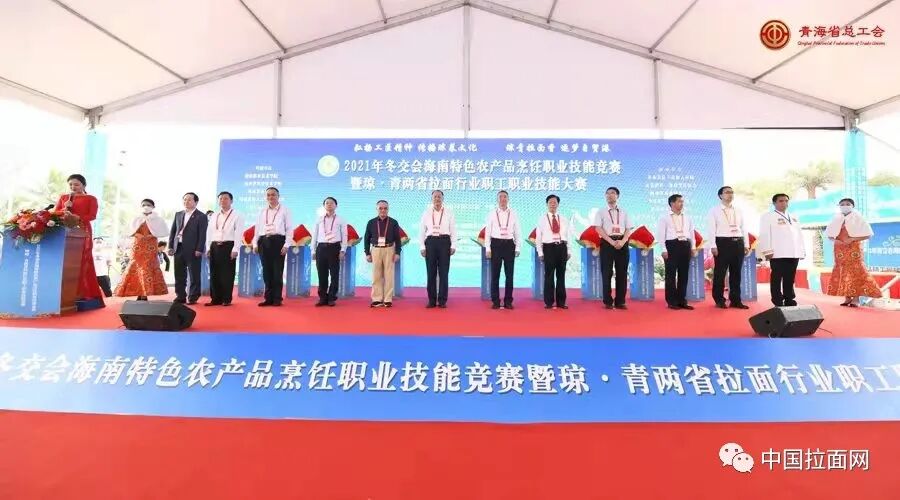 12月17日上午,由海南省总工会、青海省总工会、海南省人力资源和社会保障厅主办,海南省财贸旅游烟草工会、海南省职工服务中心、青海省化隆县地方品牌产业培育促进局、海南省酒店与餐饮行业协会、海南省酒店与餐饮行业工会联合会承办的“2021年冬交会海南特色农产品烹饪职业技能竞赛暨琼青两省拉面行业职工职业技能大赛”在海南国际会展中心举行。全国总工会副主席(兼)、青海省委常委、省总工会主席马吉孝,海南省人大常委会副主任、省总工会主席陆志远出席活动,海南省总工会党组书记、常务副主席王全,青海省总工会党组书记、常务副主席陈志忠,海南省人力资源和社会保障厅党组成员、副厅长林琳为活动致辞。