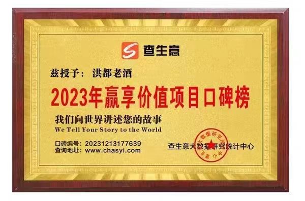 此次荣膺“2023赢享价值项目口碑榜”,既是对洪都老酒百年传承的肯定,也是对其一贯品质和服务的认可。洪都老酒不仅以其丰富的酿酒经验和精湛的工艺,打造出了一系列口感醇厚、回味悠长的优质产品,更是通过不断完善的服务体系,为消费者带来了全方位的美好体验。