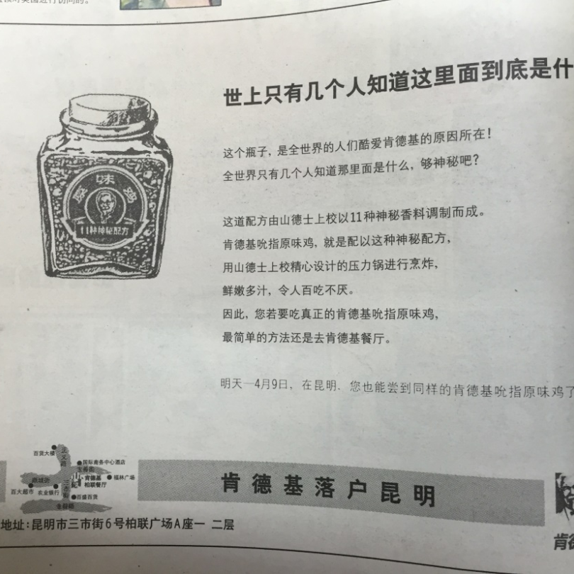 云南有了第一家肯德基。我们都熟悉它的代号,KMN001柏联餐厅。