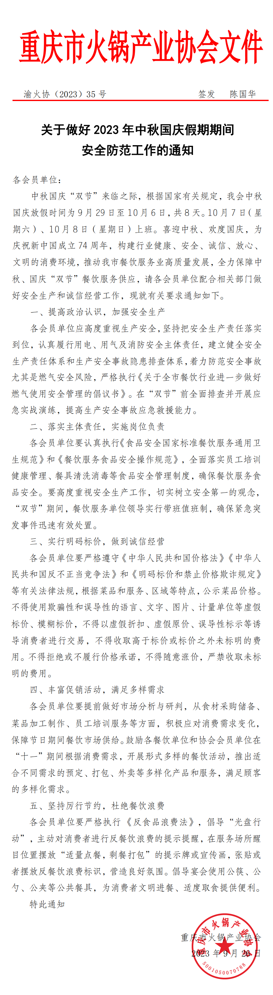 关于做好2023年中秋国庆假期期间安全防范工作的通知