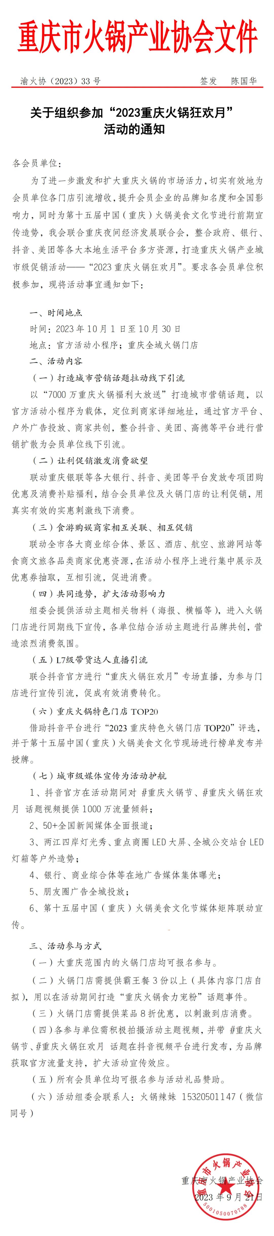 关于组织参加“2023重庆火锅狂欢月”活动的通知