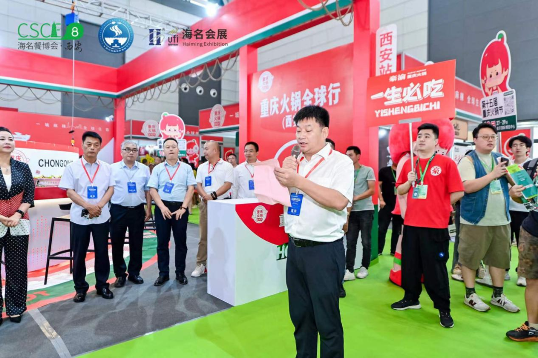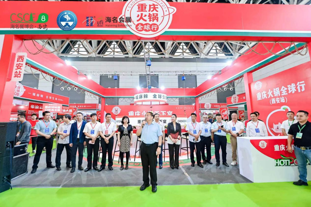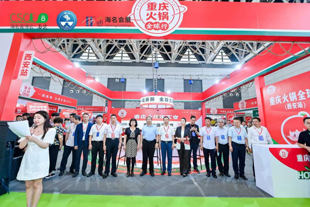 6月15日,2023重庆火锅全球行(西安站)在2023第8届西安餐博会隆重开展。德庄、秦妈、豪渝、刘口水、小木凳、俏辣嘟等十余家重庆知名火锅企业集体亮相,重庆火锅天下宴举行了盛大的开锅仪式,商务部驻西安特派员胡剑萍、陕西省商务厅二级巡视员贾银生、西安市商务局二级巡视员安建勇、重庆市商务委服务业发展处副处长张文华,重庆市火锅协会秘书长周亚, 重庆市商业联合会会长刘梅、重庆市火锅协会党支部书记李乾惠等领导以及各行业协会、餐饮商会、品牌方代表及媒体记者朋友们参与了本次活动。