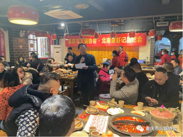 品鉴会上,重庆市火锅协会副会长曾清华、王人庆先生分别致辞,欢迎大家齐聚一堂,共品北海美味;北海逮虾记代表对虾滑系列产品做了详细介绍。