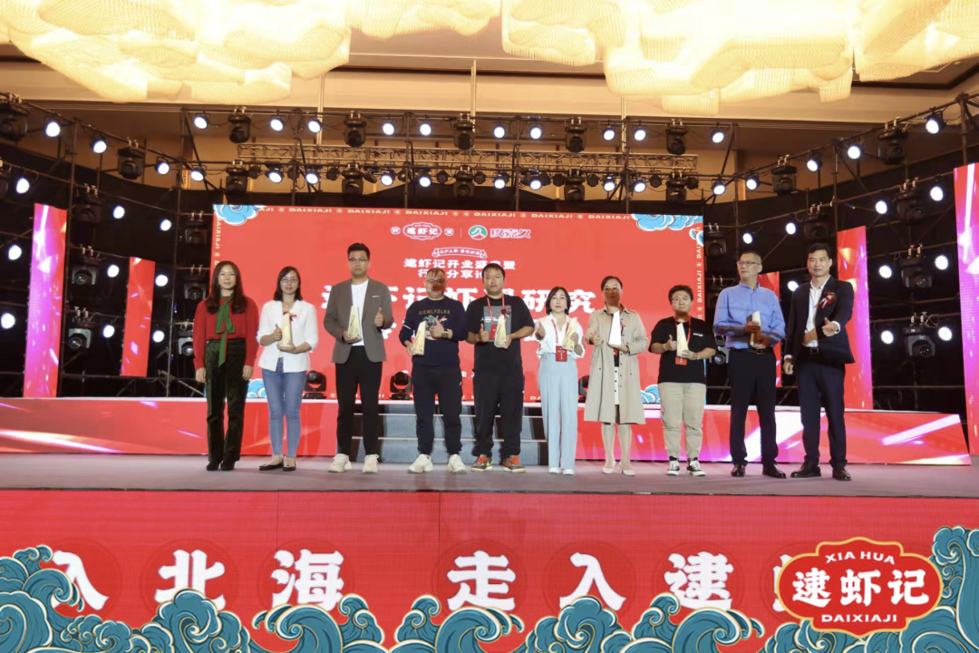 逮虾记成立以来,凭借优质产品、用心服务,俘获了2.7万家餐饮门店,在活动现场,我们为一路陪伴成长的元勋客户颁发奖杯,感恩他们一路以来的陪伴。