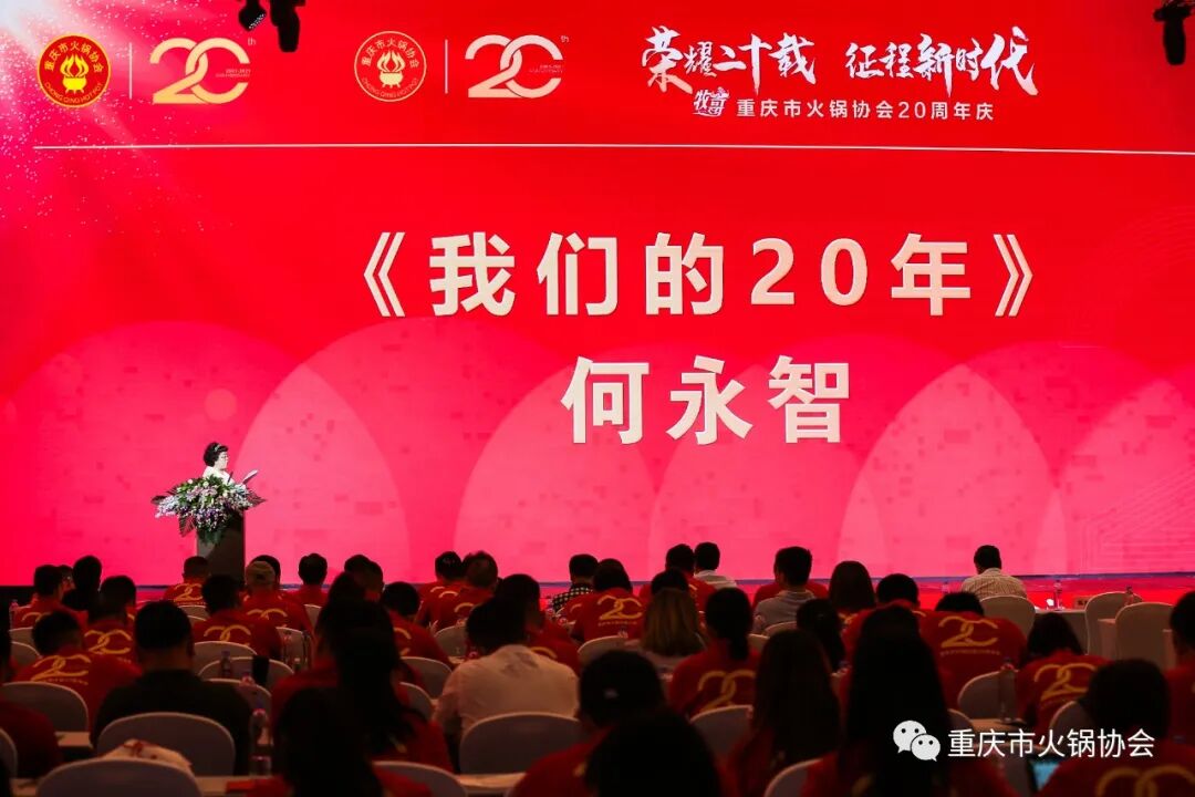 本次庆典活动以“荣耀二十载,征程新时代”为主题,分为“岁月如歌”、“同心发展”和“红火未来”三大篇章演绎和展现。通过不同的篇章回顾重庆市火锅协会20年来的辉煌历程和卓越成就,展示重庆火锅人积极向上、锐意进取的精神风貌。何永智会长说到,协会的这些荣誉,离不开各会员企业的不离不弃,离不开一直冲锋在火锅行业前线的开疆者。协会将再接再厉,做锐意进取的助推器,坚持以构筑协会服务体系为主线,以提升行业凝聚力、影响力和综合服务能力为目标,引领重庆火锅行业在新时代开拓发展!