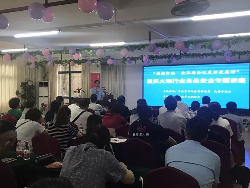 近年来,我国火锅的种类日趋多样化,消费者对火锅的需求日益旺盛,火锅行业市场前景一片光明。同时,火锅行业的“后厨危机”日渐频现。为进一步提升重庆火锅行业食品安全水平,努力打造让公众满意的食品安全消费环境,昨日(7月4日)下午,重庆市火锅协会开展了一次以“尚德守法,食品安全让生活更美好”为主题的重庆火锅行业食品安全专题讲座,邀请了重庆市市场监督管理局吴德中处长作为主讲嘉宾。
