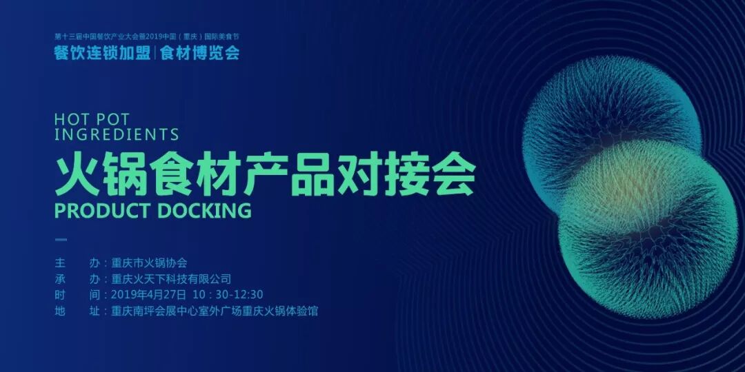 由重庆市商务委员会、南岸区人民政府支持,中国烹饪协会主办,重庆市烹饪协会、重庆市火锅协会、重庆市小面协会、重庆市江湖菜协会共同承办的“第十三届中国餐饮产业大会暨2019中国(重庆)国际美食节/餐饮连锁加盟、食材博览会”即将于2019年4月27日~4月29日在南坪会展中心举行!