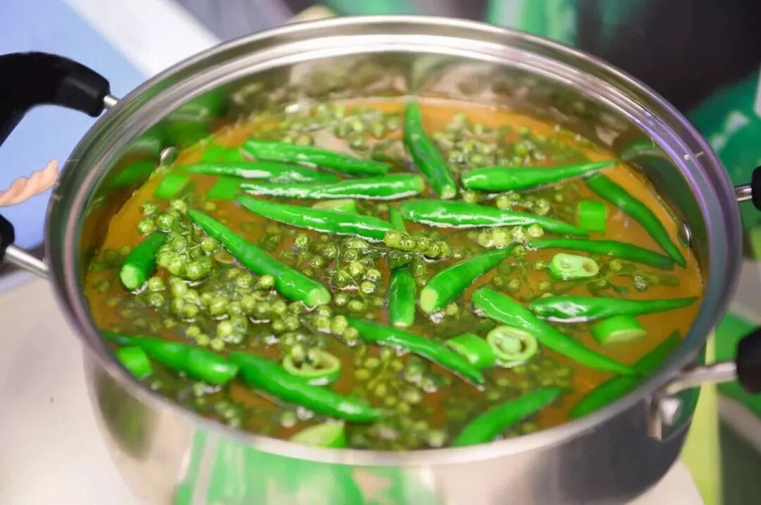 青一色经典鲜青双椒锅作陪,