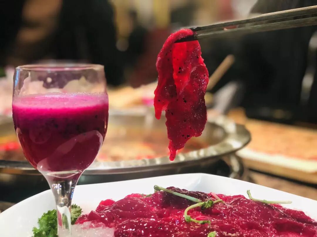 将薄薄的牛肉片浸入红龙果的汁水里入味,在锅底烫至20秒捞起,嫩滑可口。果香缓解了麻辣带来的刺激,火热中蕴藏着一丝绵柔的优雅,像重庆女孩的性子,嘴上不饶人,行动上处处留有余地,直爽中有着不易察觉的体贴。