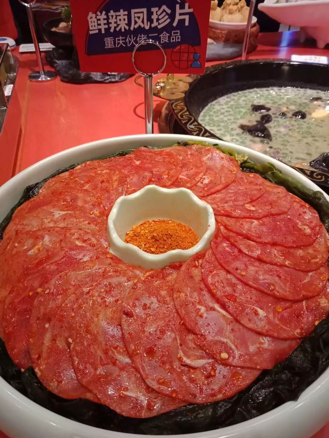 优质刀工孕育出的超薄鲜辣凤珍片,只需5秒烫煮就能获得鲜脆口感,搭配伙佬二秘制蘸料口感更佳。