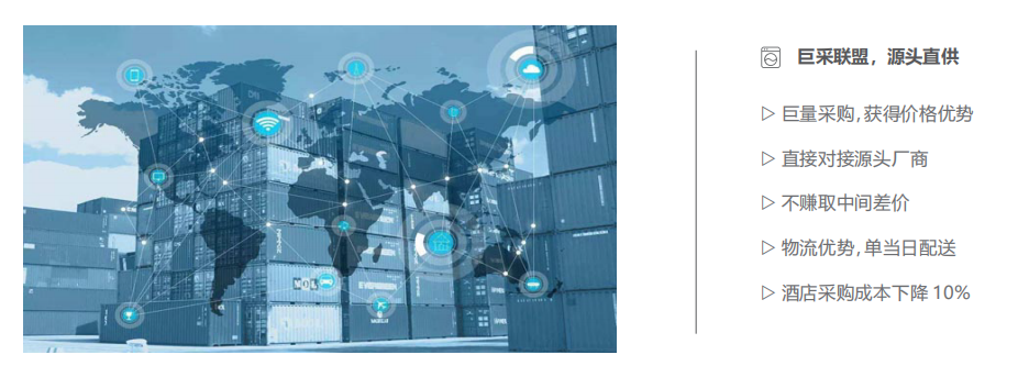 三、正庄酒店数智化供应平台:正庄联合全国八家头部洗涤企业,组建了供应链平台,将形成强大的资源整合能力,背后有近万家的酒店采购能量。我们直接到上游厂家把价格打下来,再利用我们的物流优势,我们不赚中间差价,我们是带着感恩的心来做供应链平台的,让利给酒店,让酒店的客耗品综合成本下降10%。