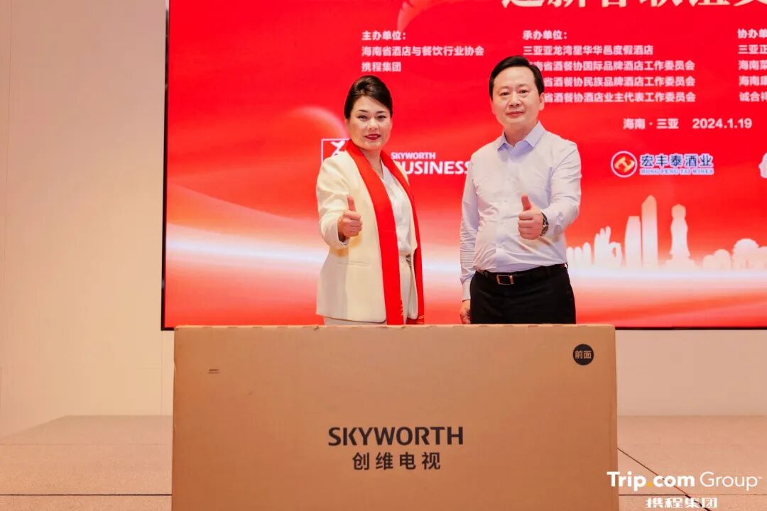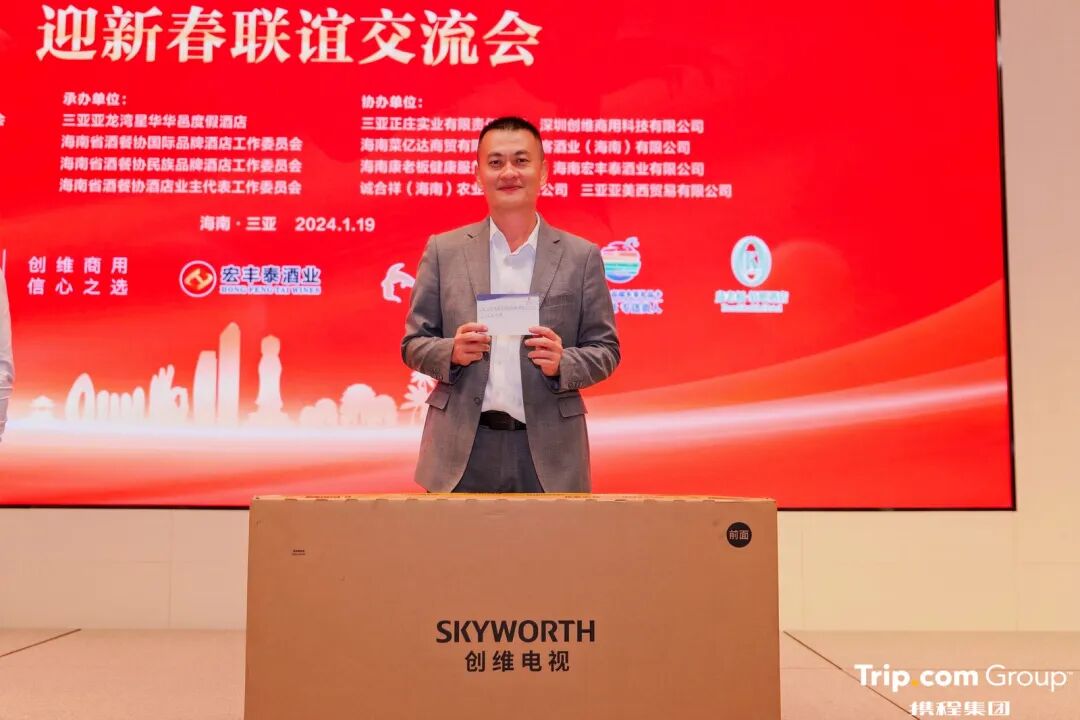 本次由创维海南赞助两台电视作为晚宴抽奖,恭喜海南星华华邑酒店业主代表郑勇和亚特兰蒂斯总经理张锦分别获得晚宴特别奖品。