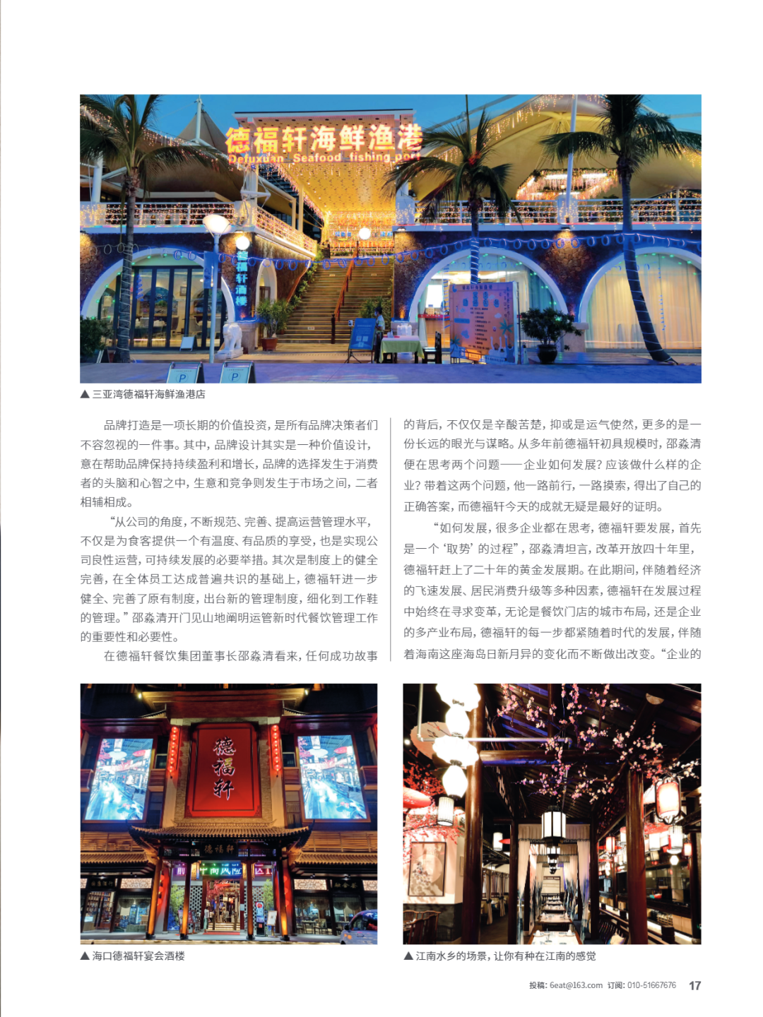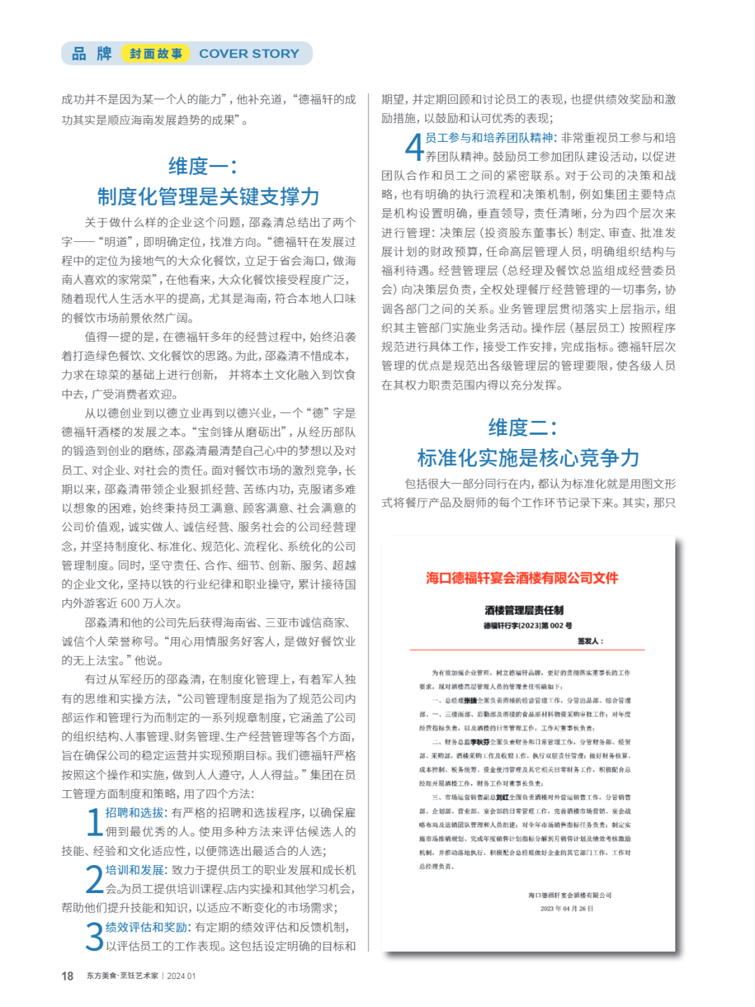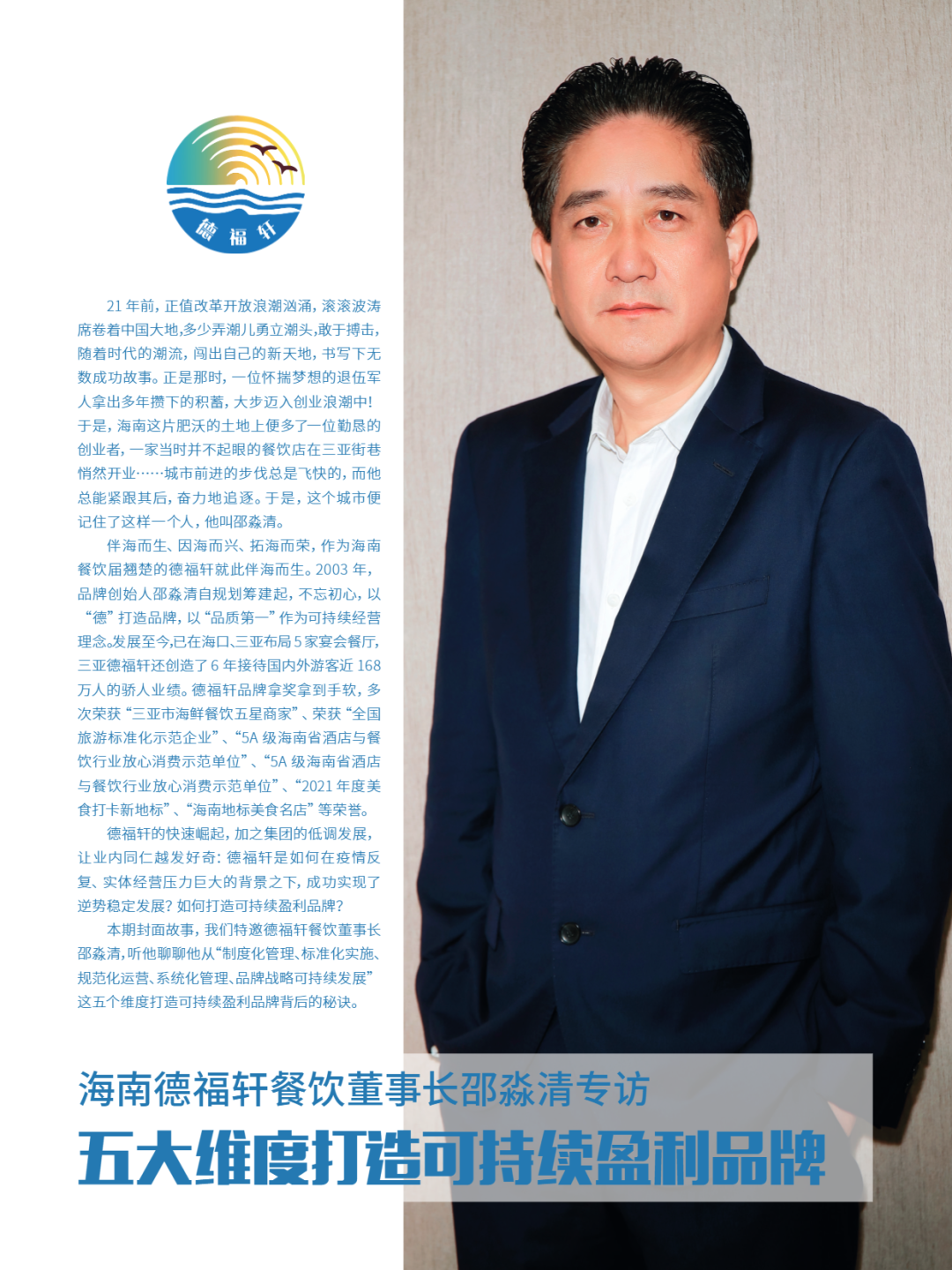 近期,《红厨帽餐厅》杂志专访海南德福轩餐饮董事长邵淼清先生,讲述“五大维度打造可持续盈利品牌”背后的秘诀。