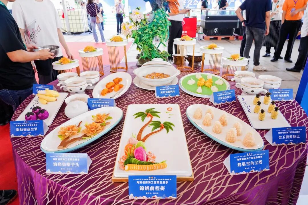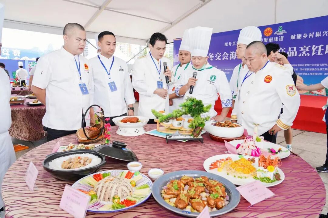 大赛期间还设有“2023年琼菜工匠菜品研发创新成果展示交流活动”环节,组织烹饪类劳模和工匠人才创新工作室、技能大师工作室、南海工匠及琼菜师傅的琼菜菜品研发创新成果展示交流活动,检验和展示各工作室、南海工匠及琼菜师傅今年已来的琼菜菜品研发创新工作成果,发挥工作室、南海工匠和琼菜师傅人才在琼菜创新中的示范引领、骨干带头和传帮带作用,引导我省烹饪界广大厨师充分利用海南优质农产品烹制出更多绿色健康、消费者喜爱的高质量琼菜菜品,助力我省酒店餐饮行业高质量发展,用实际行动践行“我为加快推进海南自贸港建设作贡献”。