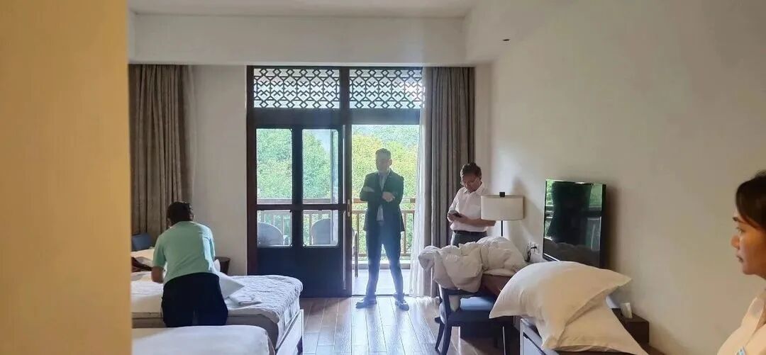 第二组:绿色饭店国家高级评审员、组长张大明,组员邱元桥(高级评审员)、沈伟(高级评审员)、刘海涛(评审员),联络员郑代旺(高级评审员);受评酒店为:三亚凤凰机场酒店、三亚康年酒店、三亚山海天大酒店,傲途格精选。