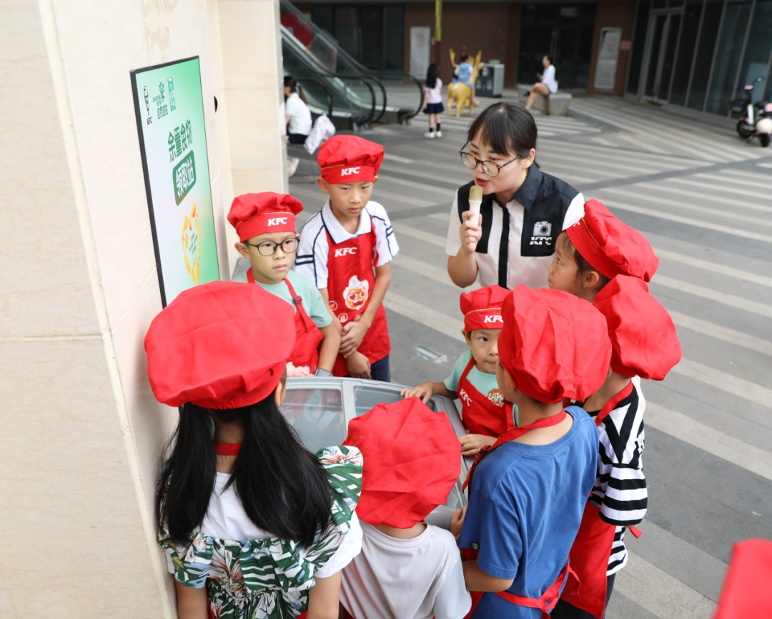参观完后厨,同学和家长们的注意力随即被餐厅门外的食物驿站吸引。肯德基食物驿站通过在餐厅门口设置“余量食物领取站”的形式,将餐厅未售完且保质期内的余量食物免费分发给社区居民,既能够避免食物浪费,也能帮助有需要的人。据悉,截至2023年6月底,肯德基食物驿站已覆盖全国超过90座城市近600家餐厅。