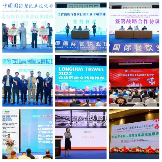 由海南省商务厅、海南省农业农村厅(省乡村振兴局)、海南省人力资源和社会保障厅、海南省教育厅、海南省市场监督管理局、海南省总工会、共青团海南省委、海南省归国华侨联合会、海口市人民政府、中国国际贸易促进委员会海南省委员会支持,海口市商务局指导,世界中餐业联合会、海南省酒店与餐饮行业协会、东方网升(迈点网、最佳东方)主办的2022中国国际餐饮业投资与合作大会于2022年6月30日在海口开幕,海南省人大常委会原副主任、海南省总工会原主席符兴,世界中餐业联合会会长邢颖,商务部驻海南特派员办事处副特派员史淳风,海南省商务厅副厅长崔剑,海南省人社厅副厅长李俊,海南国际经济发展局副局长姬国辉,海南省总工会副主席符有信,海南职业技术学院党委书记王承庆,海南职业技术学院校长黄银珍,海南省侨联秘书长李诚,商务部驻海南特派员办事处处长齐凯,海南省市场监督管理局餐饮服务监督管理处处长杨忠银,海南省人社厅劳动关系和调解仲裁管理处处长颜阳南,海南省教育厅职教处处长苏永光、高教处处长刘世琼,海南省总工会基层工作部部长骈卫滨,海南省财贸旅游烟草工会常务副主席童智忠,海口市商务局副局长胡珊等政府及院校有关部门领导,世界中餐业联合会副会长、北京大董餐饮集团董事长董振祥,中国饭店协会副会长、广州半岛投资集团董事长利永周,中国烹饪协会特邀副会长、山东省烹饪协会会长张雷,世界中餐业联合会粤菜委员会主席、广州烹饪协会会长梁日东,东方网升股份有限公司董事长(最佳东方、先之网、迈点网创始人)乔毅,南京金陵酒店管理有限公司董事长、总裁 李成勇,徐州市餐饮与酒店商会会长、江苏海天餐饮集团董事长秦雷,香港四哥餐饮研究院院长、香港餐饮代言人石国强,海南省酒店与餐饮行业协会会长符史钦、理事长黄俊忠、监事长李朝清、党支部书记叶桂平,海南省烹饪协会会长陈建胜,海南农垦热作集团党委书记、董事长李豫以及国内餐饮酒店行业协会负责人、专家学者、餐饮酒店董事长/总经理、品牌供应商、投资商、技术商、服务商、贸易商、供应商、渠道商等1000多人参会。