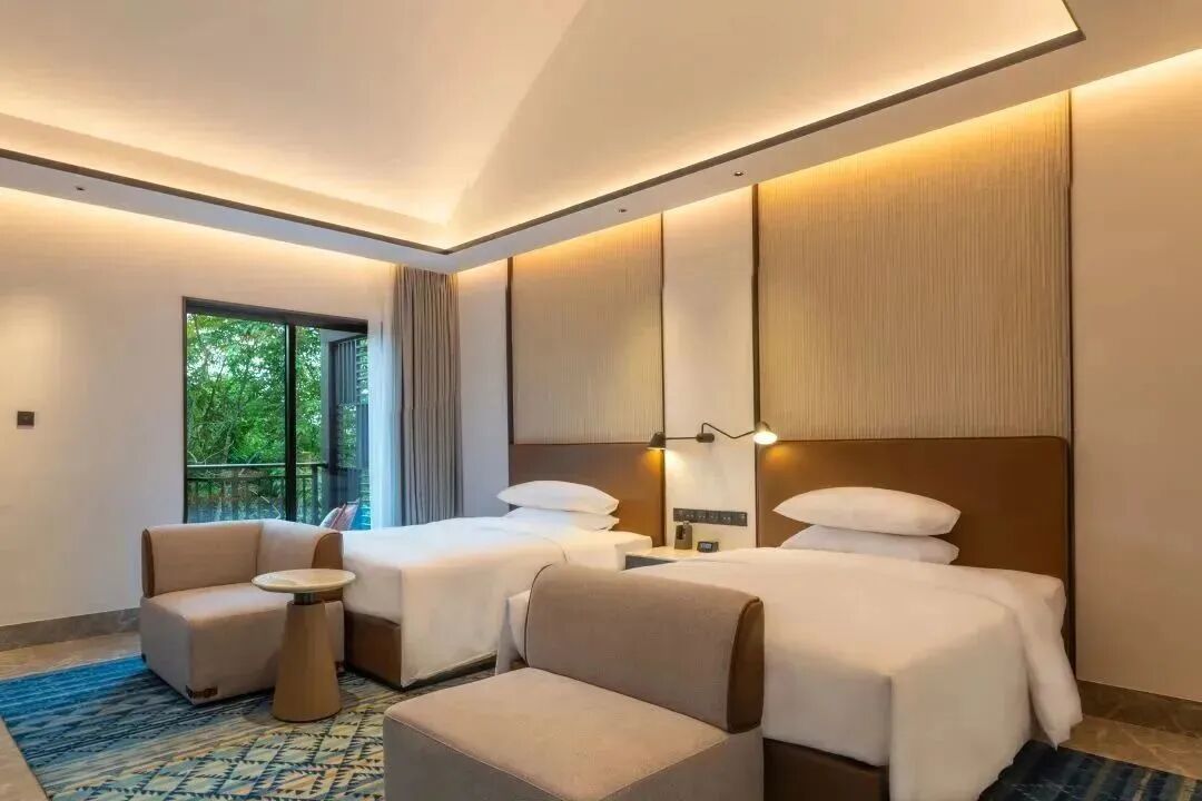 酒店拥有178间环山别墅式客房及套房,宾客伫立在房间阳台可饱览云雾缭绕的山景风光和热带雨林。客房采用温暖的中性色调及装潢,营造出一种轻松舒心的氛围;同时配备舒适床品、宽敞浴室、55英寸高清液晶电视等设施,助力宾客尽享惬意的入住体验。
