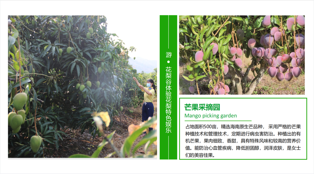 绿水青山就是金山银山。花梨谷国际共享农庄是全国首个以海南黄花梨为主题的共享养生农庄,立足海南的生态本底,紧盯市场需求,把“绿色+”融入特色产业发展全过程,探索农文旅融合发展,将海南的特色产业转化为经济优势,让绿水青山持续发挥生态效益和经济效益,实现了“青山常在、绿水长流”。