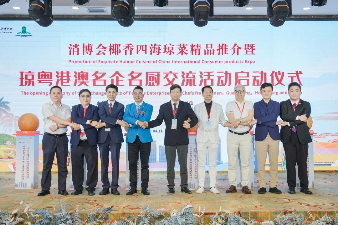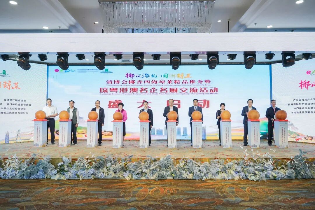 暖春之际,消博如约。为加强琼粤港澳合作交流,围绕海南自由贸易港和国际旅游消费中心定位,提升琼菜品牌影响力,推动海南与粤港澳大湾区的行业交流,共促琼粤港澳餐饮深度合作,4月11日,由海南省商务厅主办,海南省政协港澳台侨外事委员会指导,世界中餐业联合会支持,海南省酒店与餐饮行业协会承办,琼粤港澳四地餐饮美食相关行业协会协办的“消博会椰香四海琼菜精品推介暨琼粤港澳名企名厨交流活动”在海口隆重开幕。