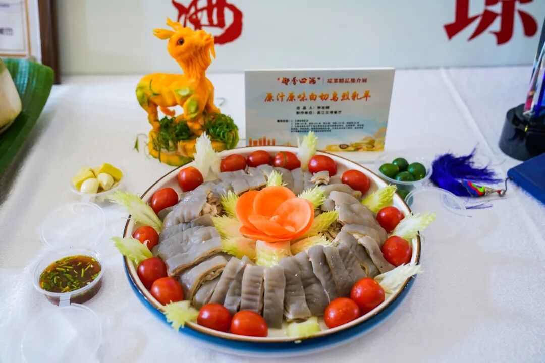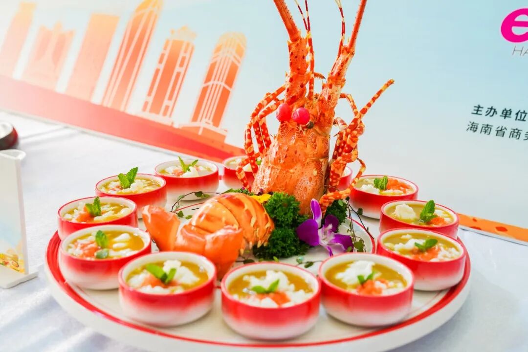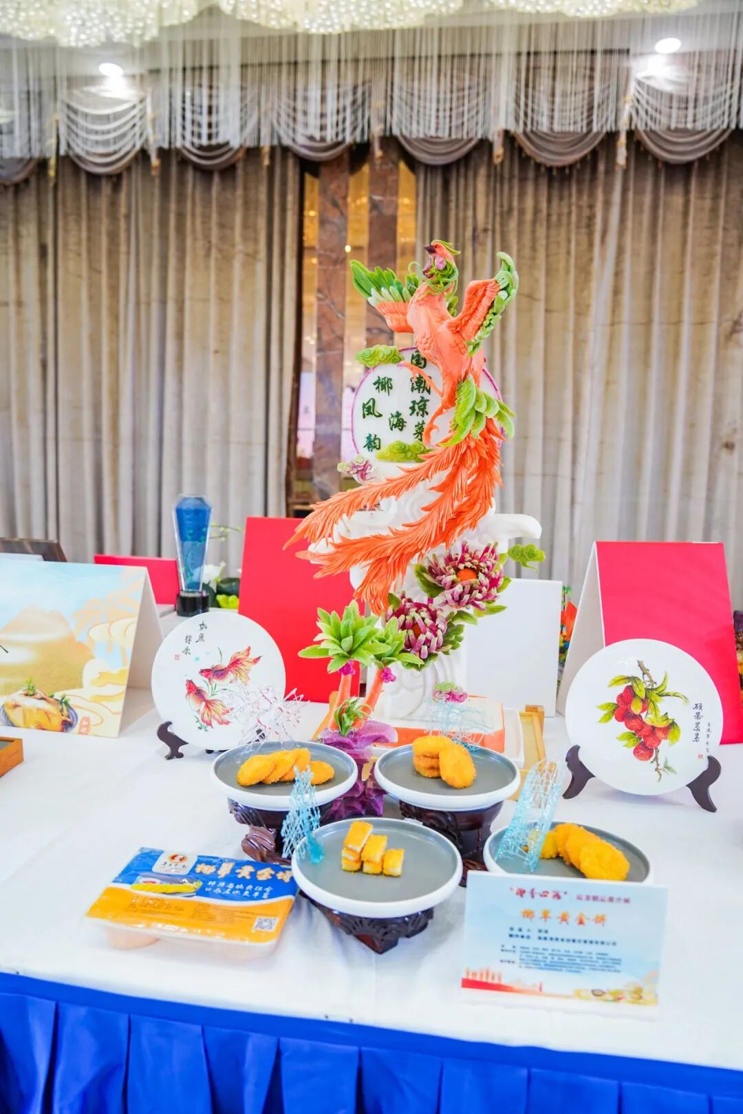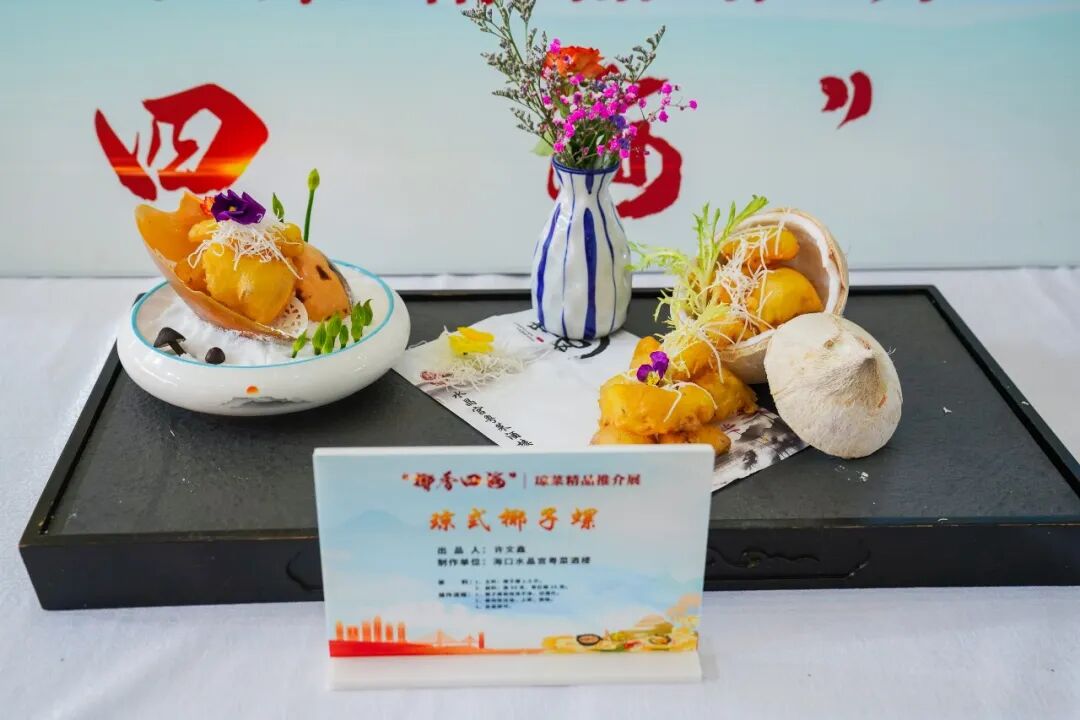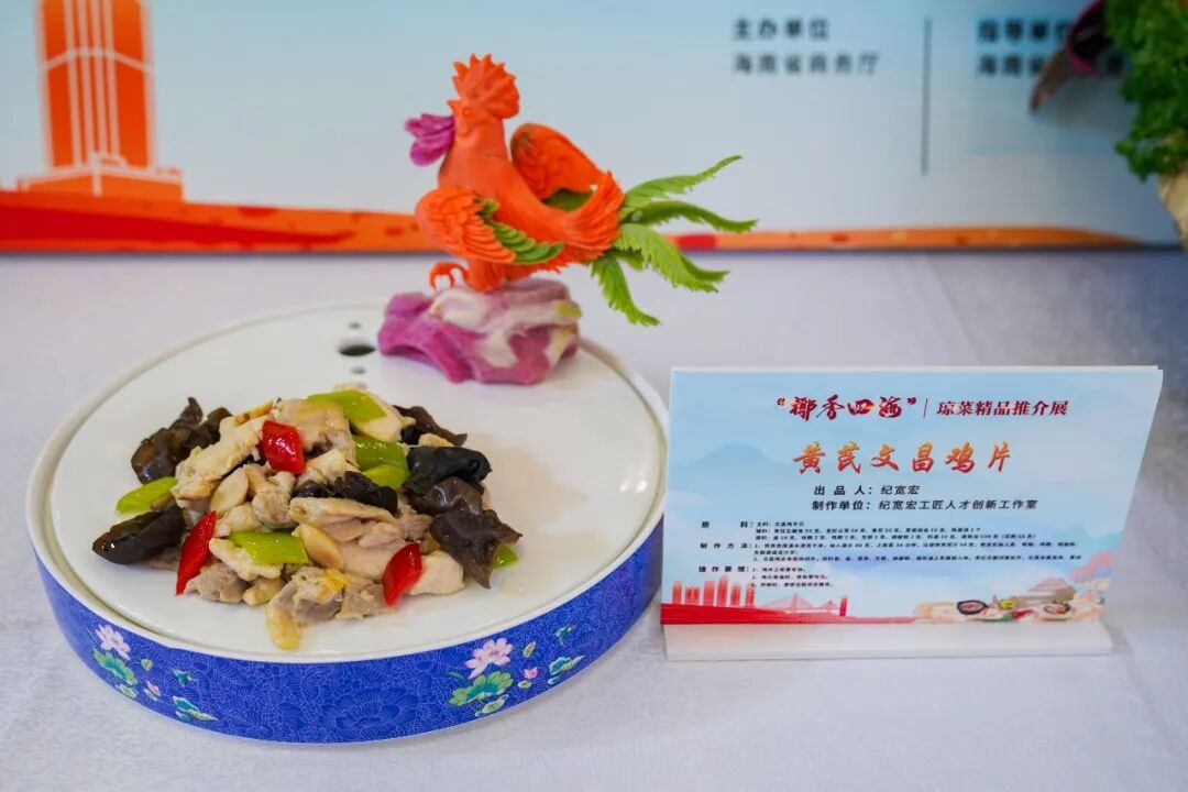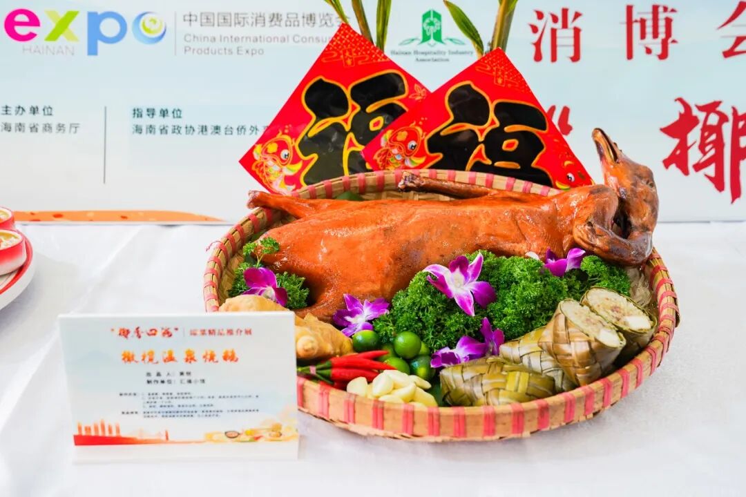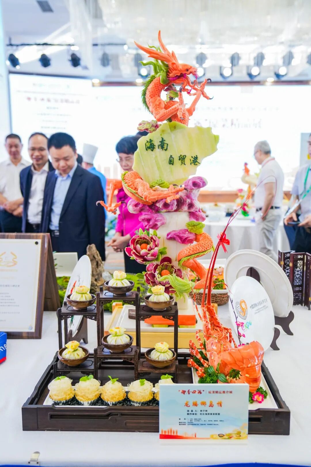 同期,为宣传推介琼菜精品,以“椰风海韵•国潮琼菜”为主题,启动仪式现场特设“椰香四海”琼菜精品展区,推介发布88道琼菜精品,其中由海南琼菜王、琼菜记忆、海南大院等省内名企团队出品推介“琼崖三宝、盐焗香螺、海味八宝鸽”等80道琼菜精品,由海南餐饮龙头企业——龙泉集团出品推介一席龙泉文昌鸡全宴,通过创意的烹饪、经典的味道、精辟的文字、美感的设计、生动的图片,记录属于琼菜精品的独特印象。现场邀请18位海南知名小红书/抖音达人打卡宣传,共同宣推消博会琼菜名宴名菜精品。