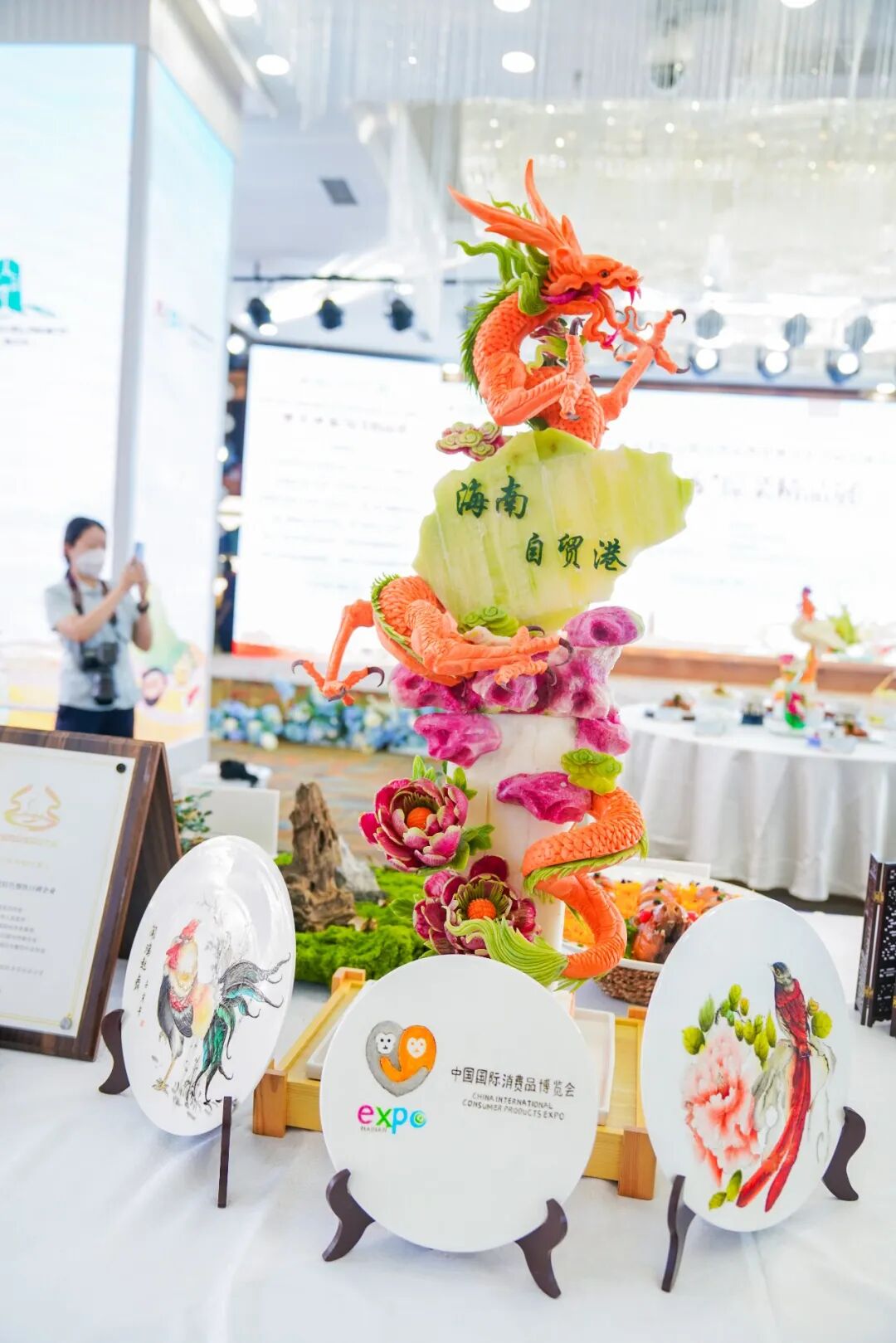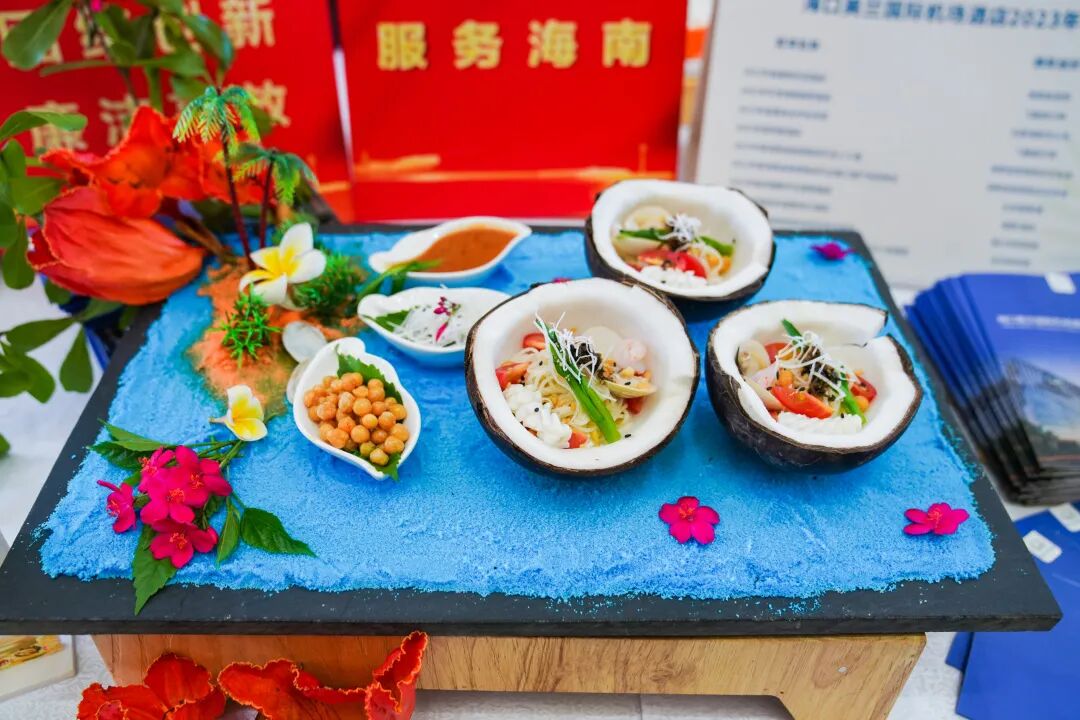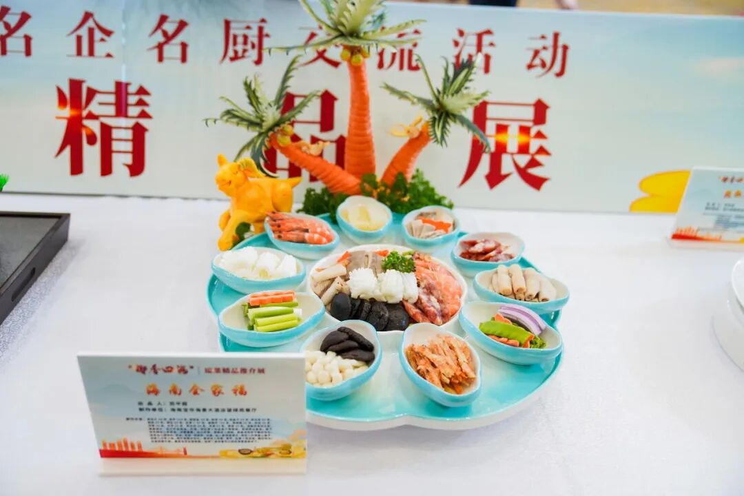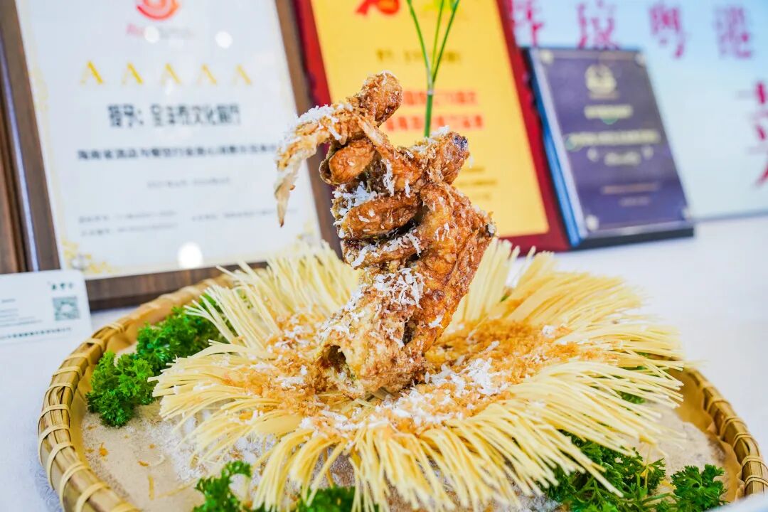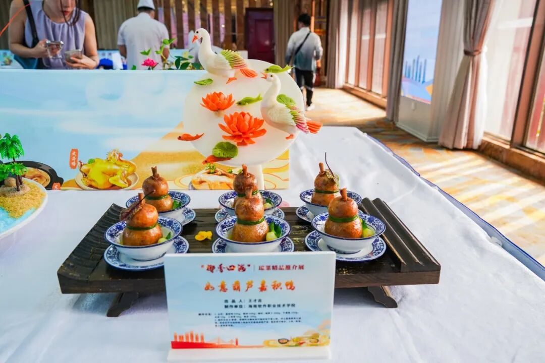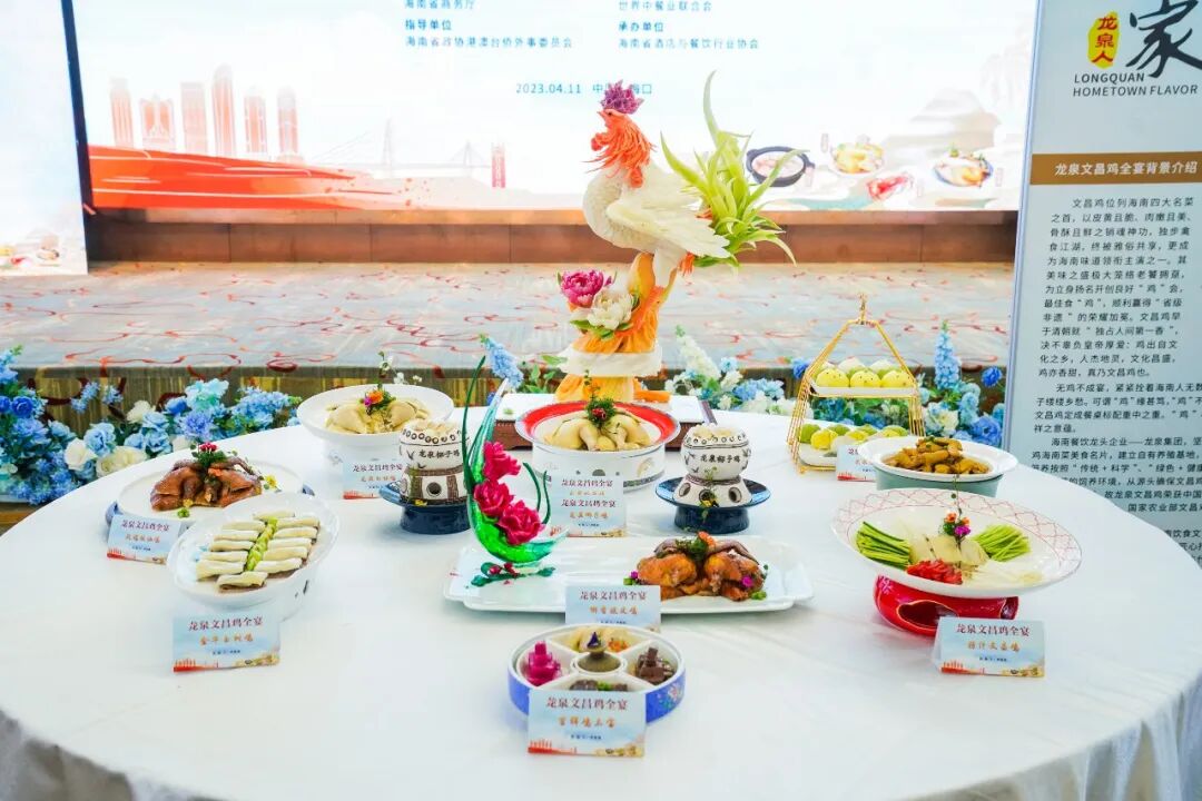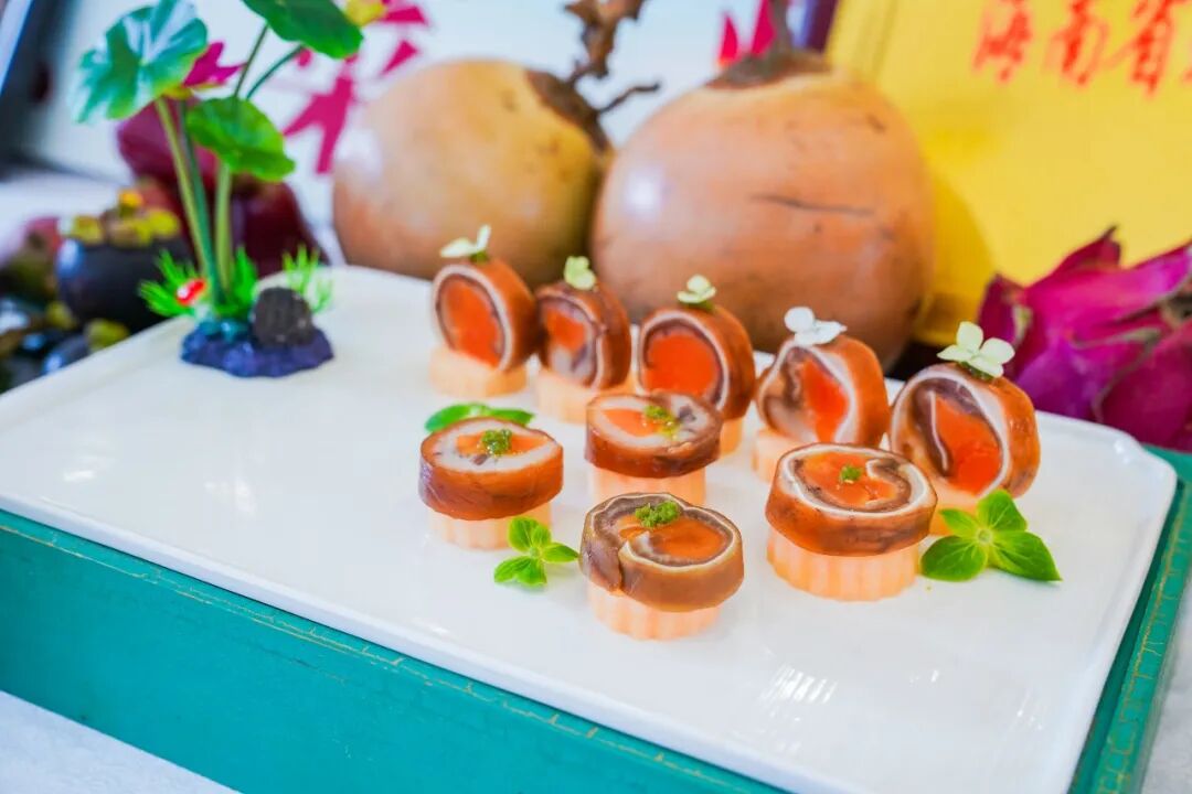 同期,为宣传推介琼菜精品,以“椰风海韵•国潮琼菜”为主题,启动仪式现场特设“椰香四海”琼菜精品展区,推介发布88道琼菜精品,其中由海南琼菜王、琼菜记忆、海南大院等省内名企团队出品推介“琼崖三宝、盐焗香螺、海味八宝鸽”等80道琼菜精品,由海南餐饮龙头企业——龙泉集团出品推介一席龙泉文昌鸡全宴,通过创意的烹饪、经典的味道、精辟的文字、美感的设计、生动的图片,记录属于琼菜精品的独特印象。现场邀请18位海南知名小红书/抖音达人打卡宣传,共同宣推消博会琼菜名宴名菜精品。