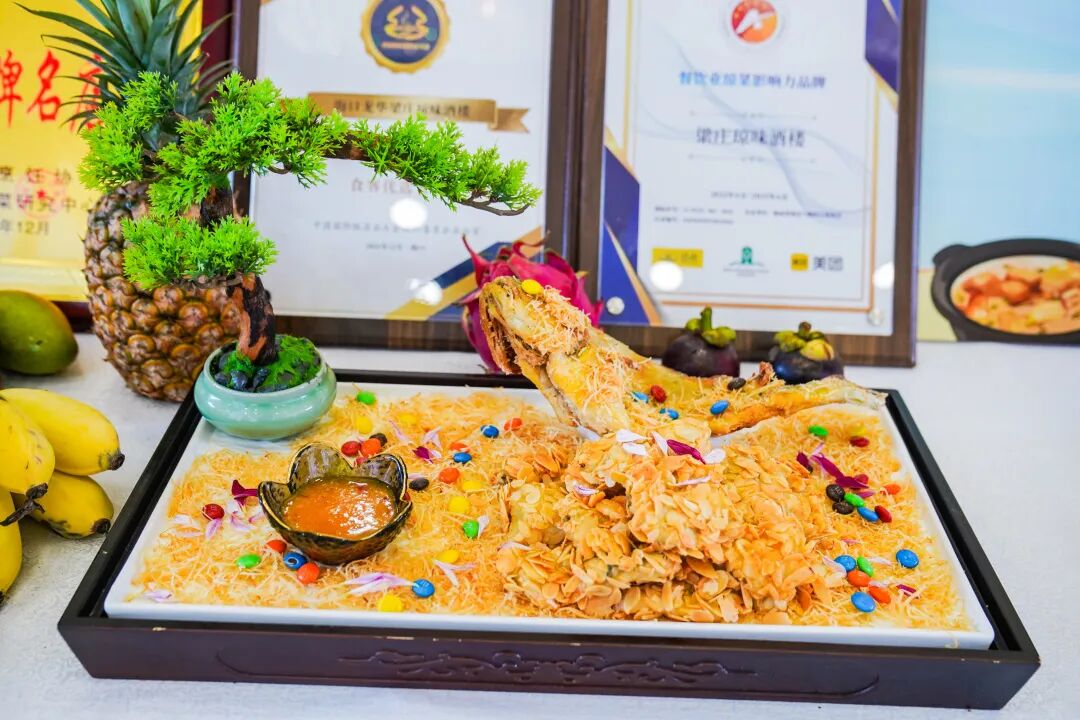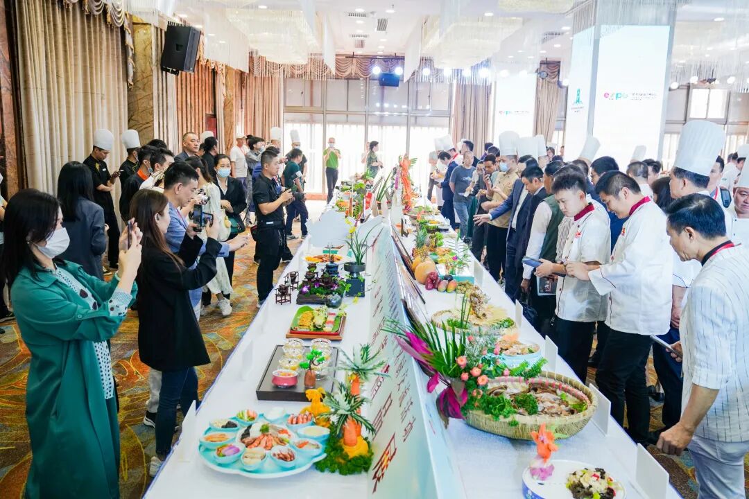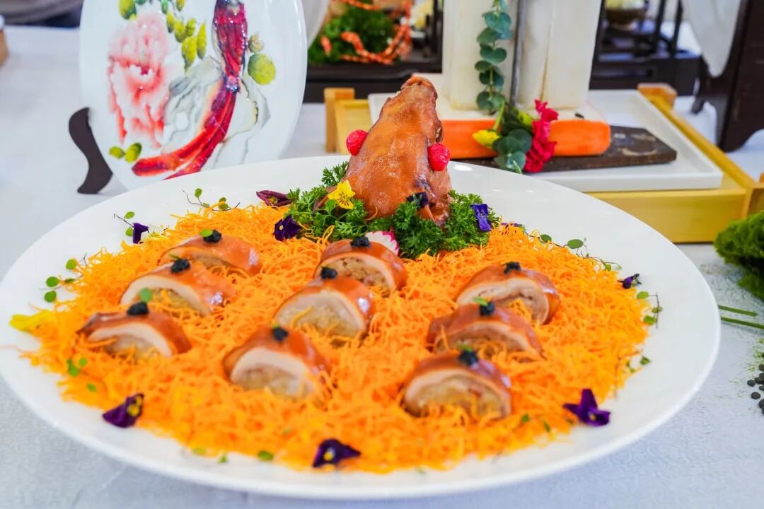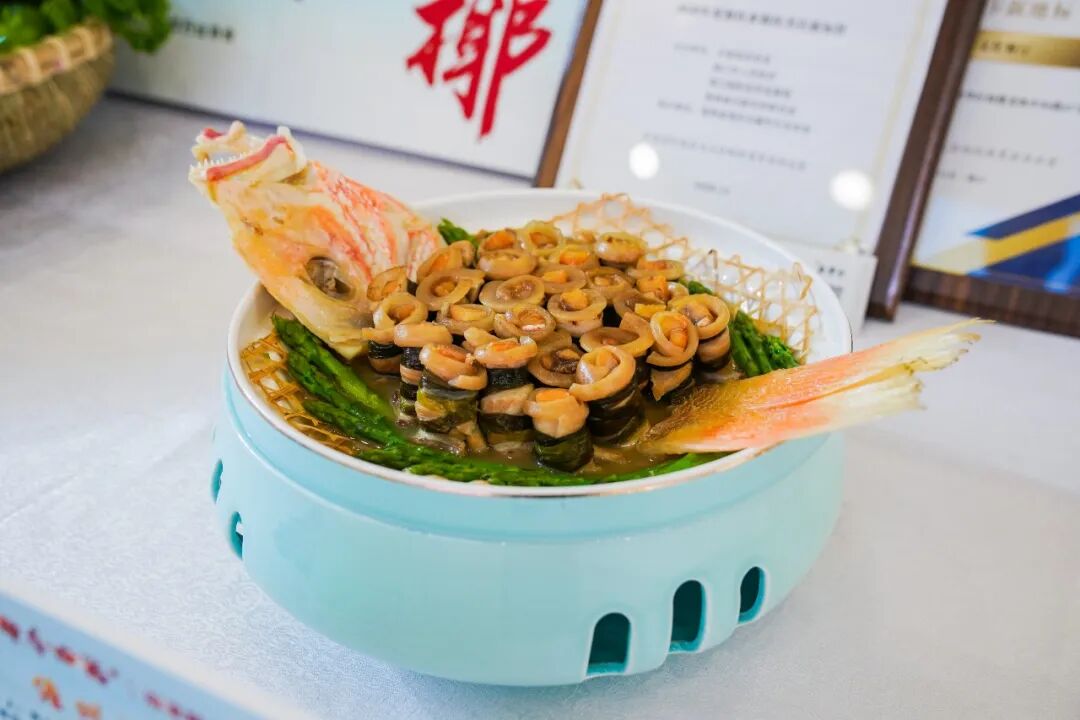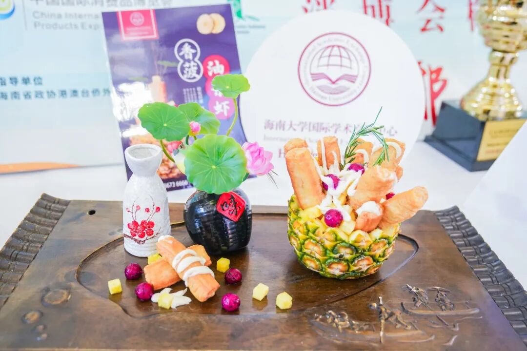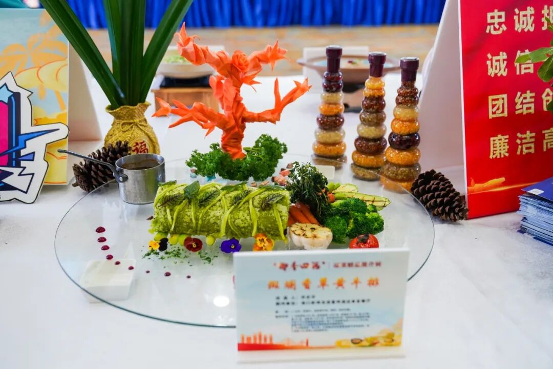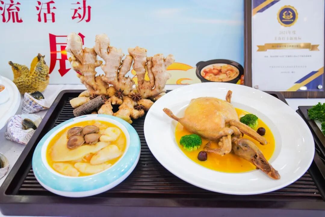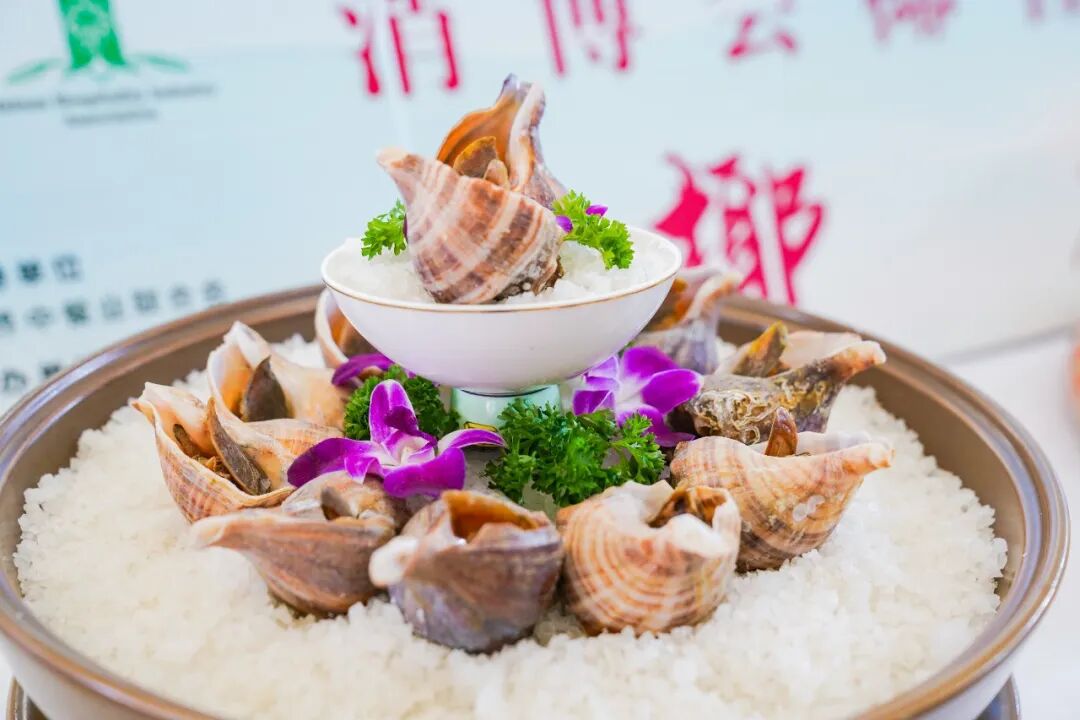 同期,为宣传推介琼菜精品,以“椰风海韵•国潮琼菜”为主题,启动仪式现场特设“椰香四海”琼菜精品展区,推介发布88道琼菜精品,其中由海南琼菜王、琼菜记忆、海南大院等省内名企团队出品推介“琼崖三宝、盐焗香螺、海味八宝鸽”等80道琼菜精品,由海南餐饮龙头企业——龙泉集团出品推介一席龙泉文昌鸡全宴,通过创意的烹饪、经典的味道、精辟的文字、美感的设计、生动的图片,记录属于琼菜精品的独特印象。现场邀请18位海南知名小红书/抖音达人打卡宣传,共同宣推消博会琼菜名宴名菜精品。