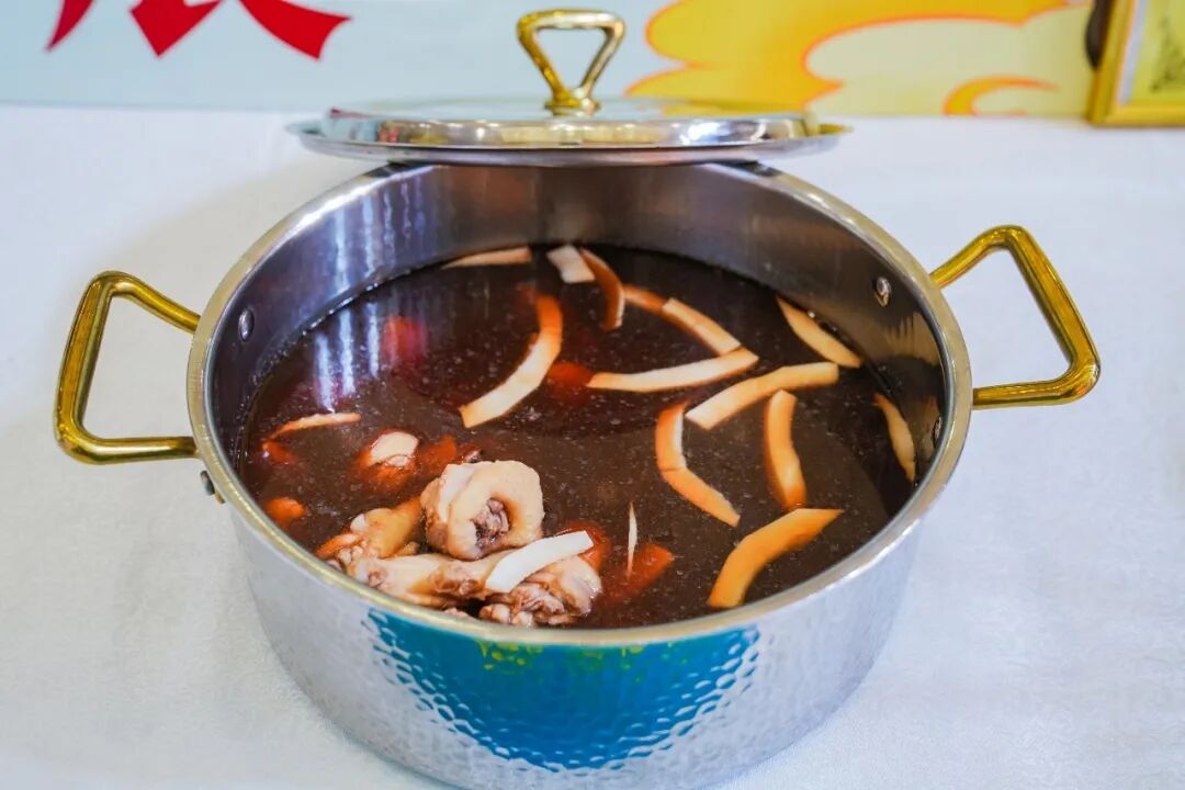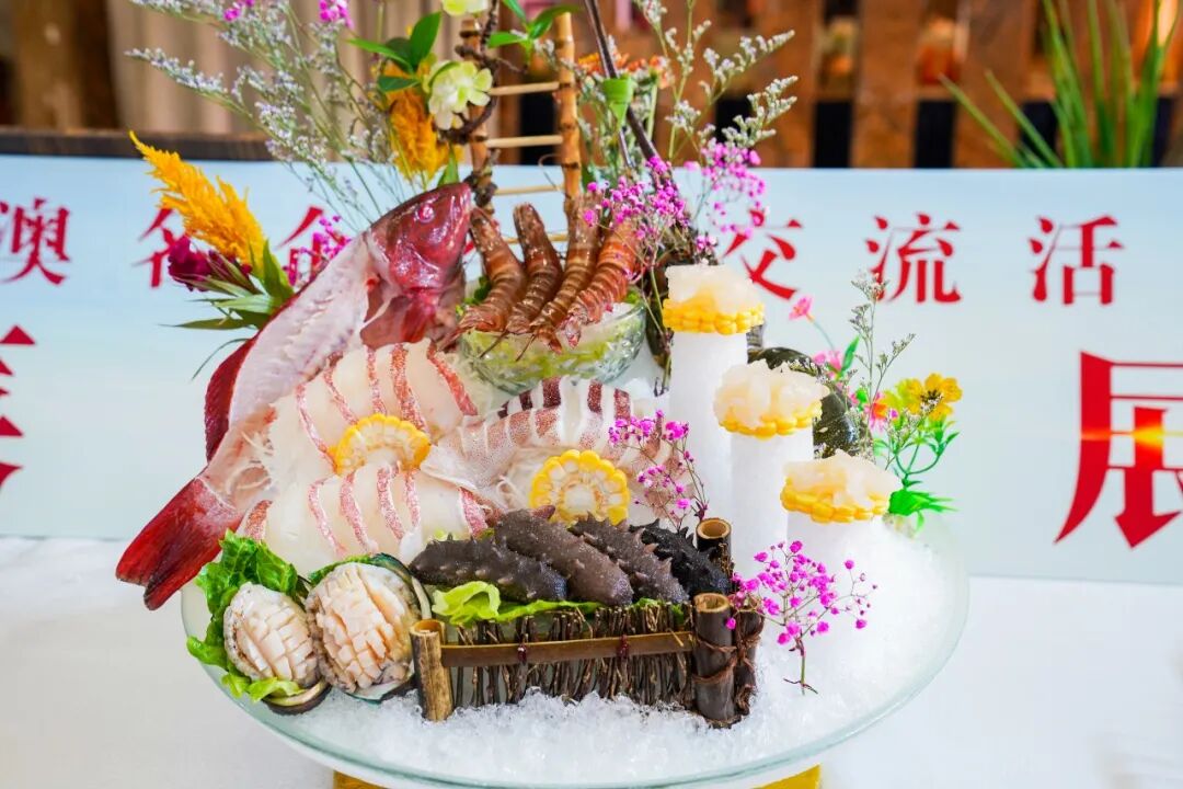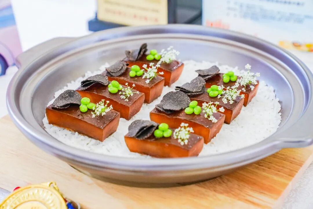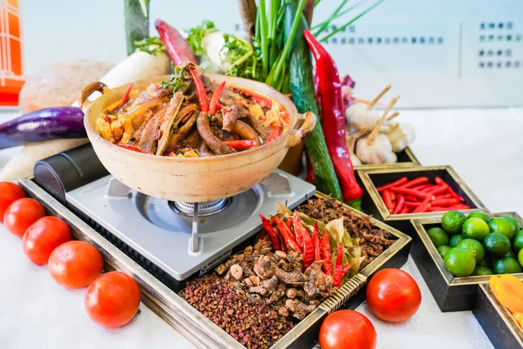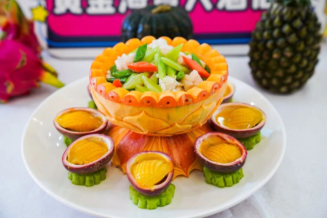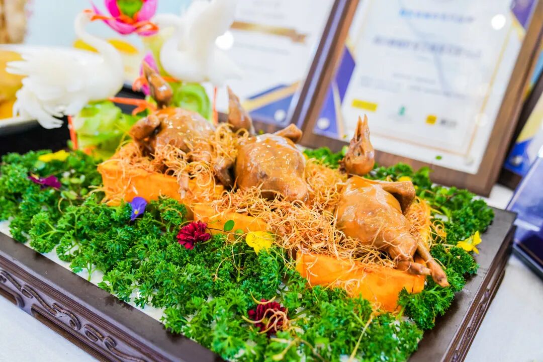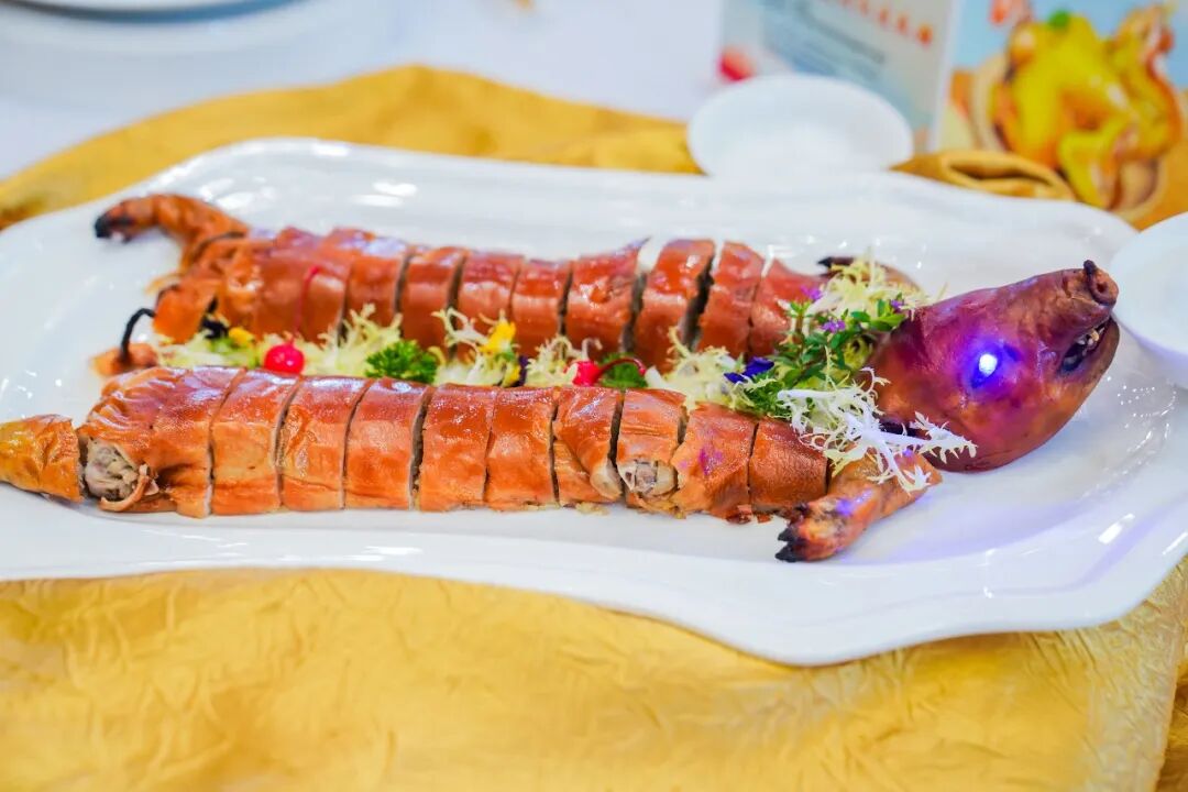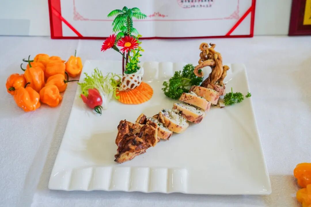 同期,为宣传推介琼菜精品,以“椰风海韵•国潮琼菜”为主题,启动仪式现场特设“椰香四海”琼菜精品展区,推介发布88道琼菜精品,其中由海南琼菜王、琼菜记忆、海南大院等省内名企团队出品推介“琼崖三宝、盐焗香螺、海味八宝鸽”等80道琼菜精品,由海南餐饮龙头企业——龙泉集团出品推介一席龙泉文昌鸡全宴,通过创意的烹饪、经典的味道、精辟的文字、美感的设计、生动的图片,记录属于琼菜精品的独特印象。现场邀请18位海南知名小红书/抖音达人打卡宣传,共同宣推消博会琼菜名宴名菜精品。