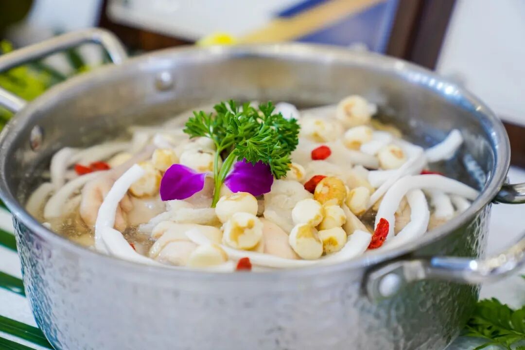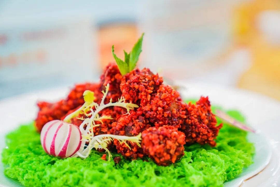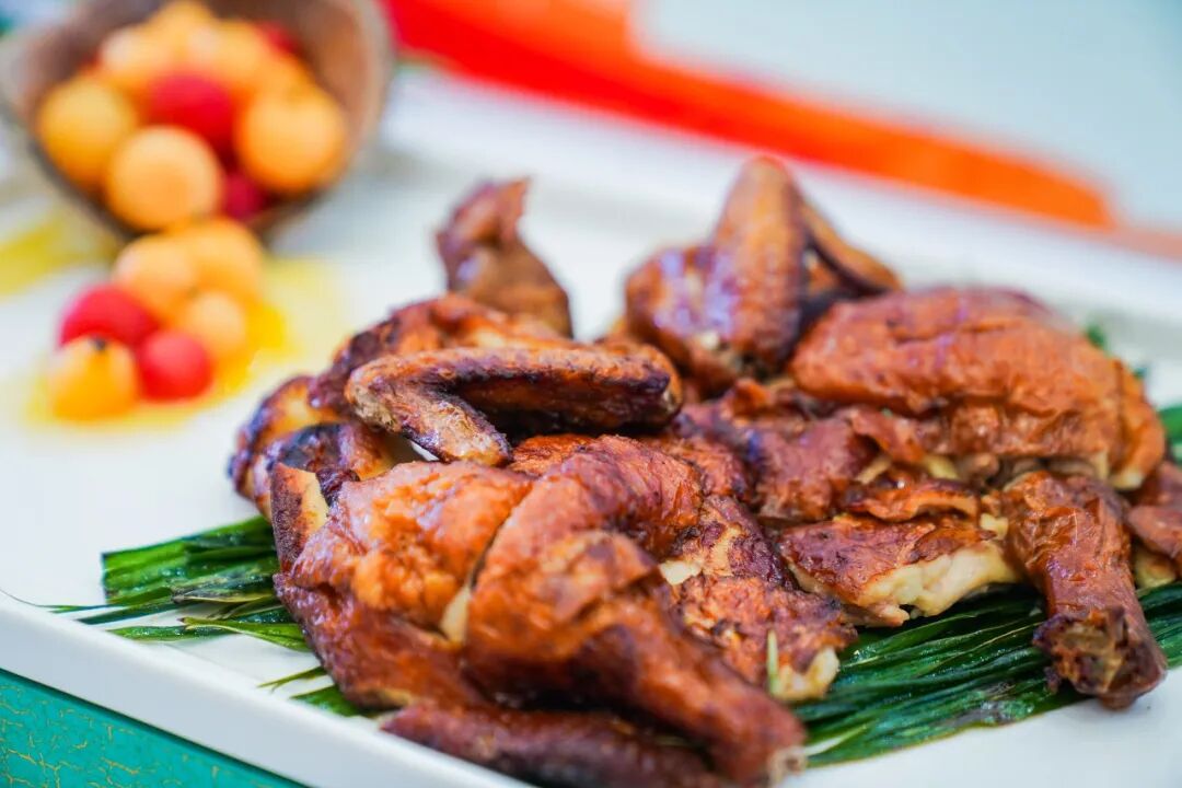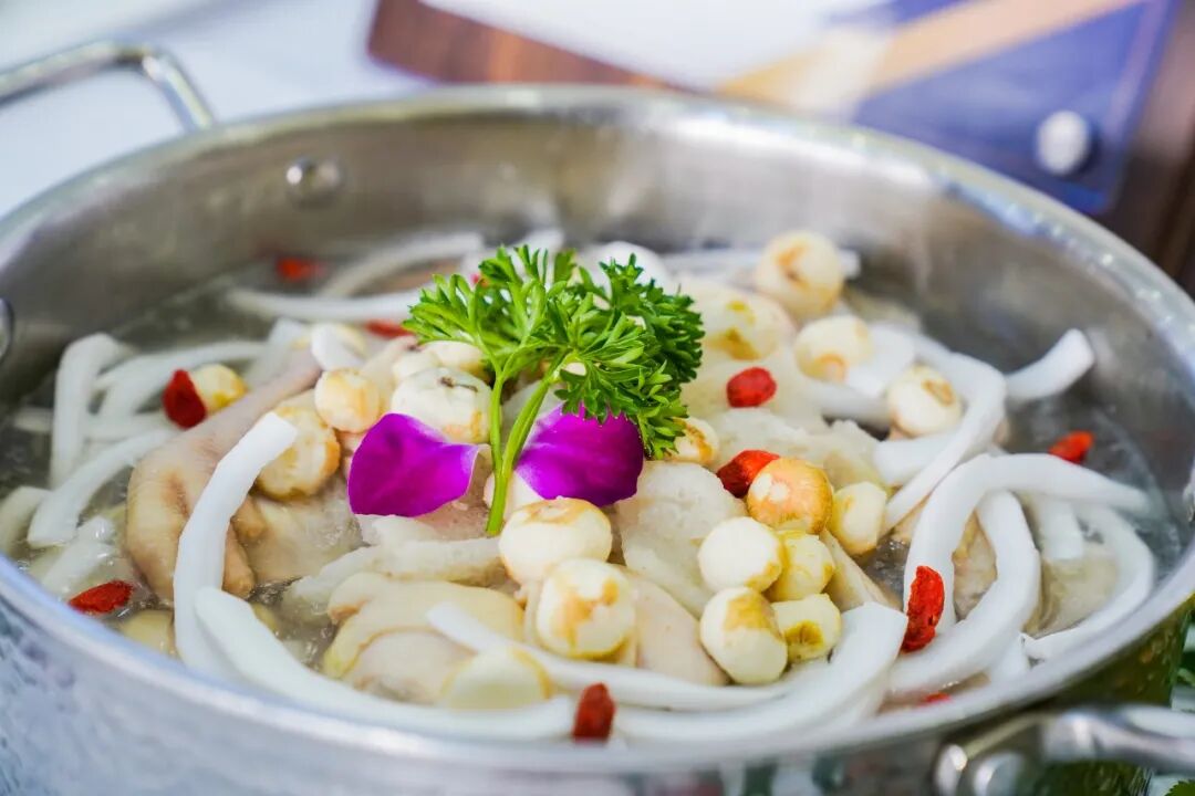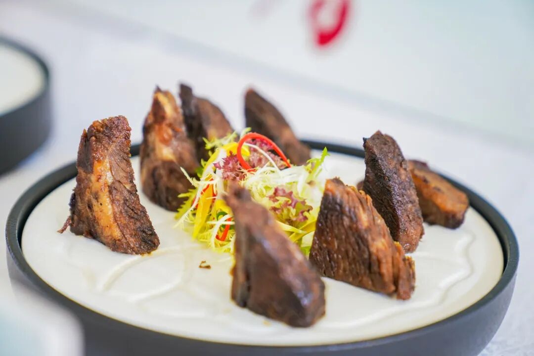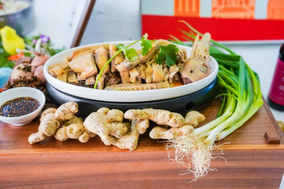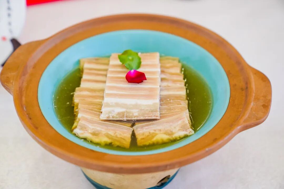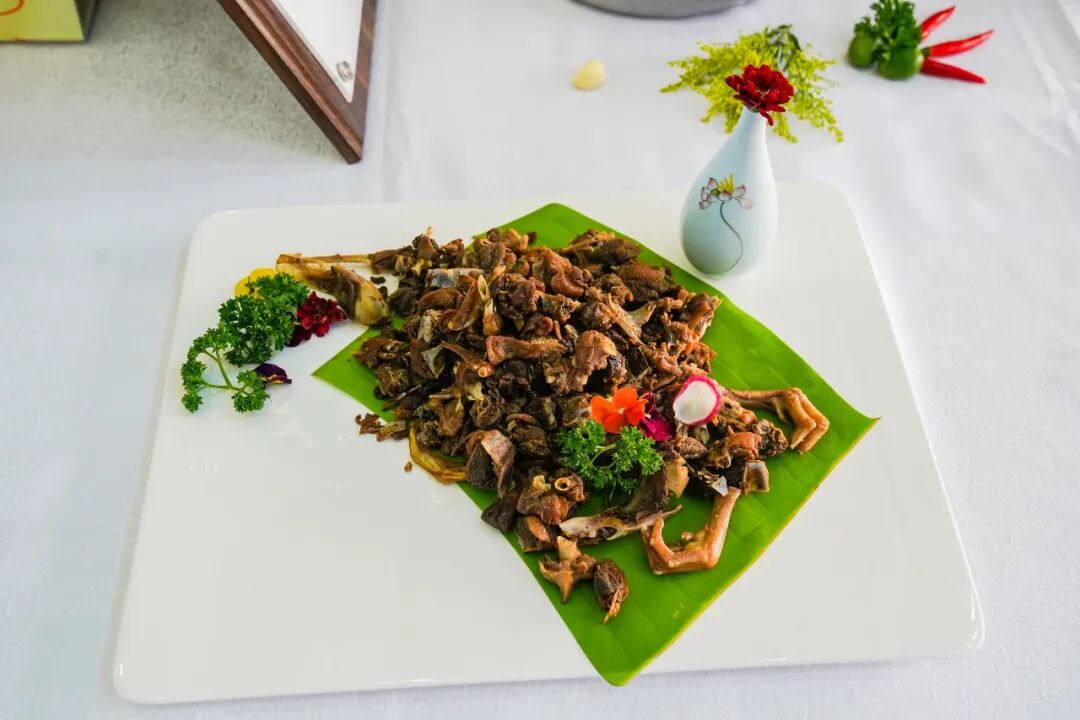 同期,为宣传推介琼菜精品,以“椰风海韵•国潮琼菜”为主题,启动仪式现场特设“椰香四海”琼菜精品展区,推介发布88道琼菜精品,其中由海南琼菜王、琼菜记忆、海南大院等省内名企团队出品推介“琼崖三宝、盐焗香螺、海味八宝鸽”等80道琼菜精品,由海南餐饮龙头企业——龙泉集团出品推介一席龙泉文昌鸡全宴,通过创意的烹饪、经典的味道、精辟的文字、美感的设计、生动的图片,记录属于琼菜精品的独特印象。现场邀请18位海南知名小红书/抖音达人打卡宣传,共同宣推消博会琼菜名宴名菜精品。