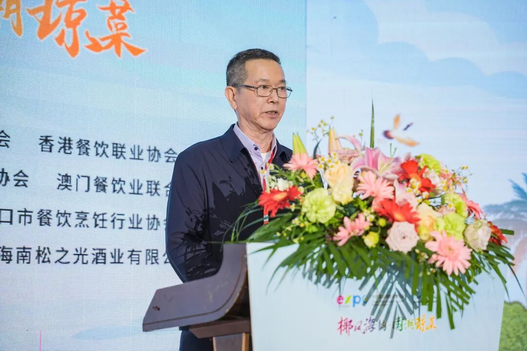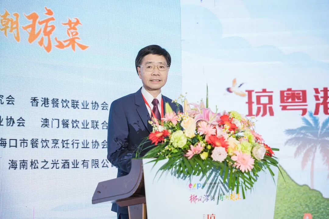 特邀嘉宾世界中餐业联合会会长邢颖致辞,他表示,当前海南正以前所未有的力度推进全方位、多层次、宽领域的对外开放,自贸港和国际旅游消费中心建设正在加速推进,海南全岛封关在即,国家政策优势凸显,投资环境不断优化,将成为海内外投资者更加广阔的投资市场和发展舞台,期待省外餐饮企业加大在琼投资力度,共享海南自由贸易港发展新机遇,携手共建美好新海南和开放新高地。